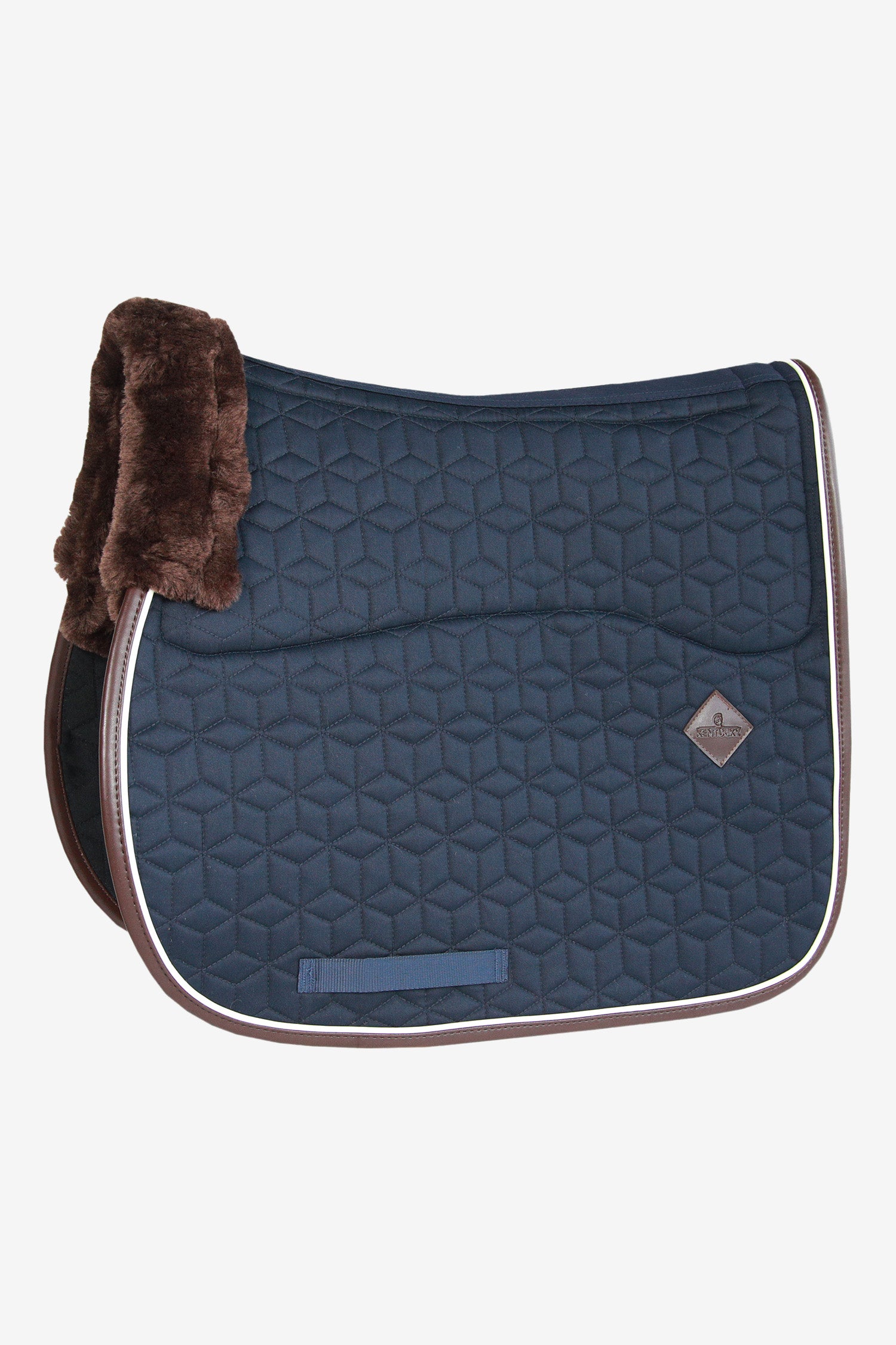 Artificiellt fårskinn under sadelläget som verkar stötdämpande, motverkar skav och ger komfort till hästen.