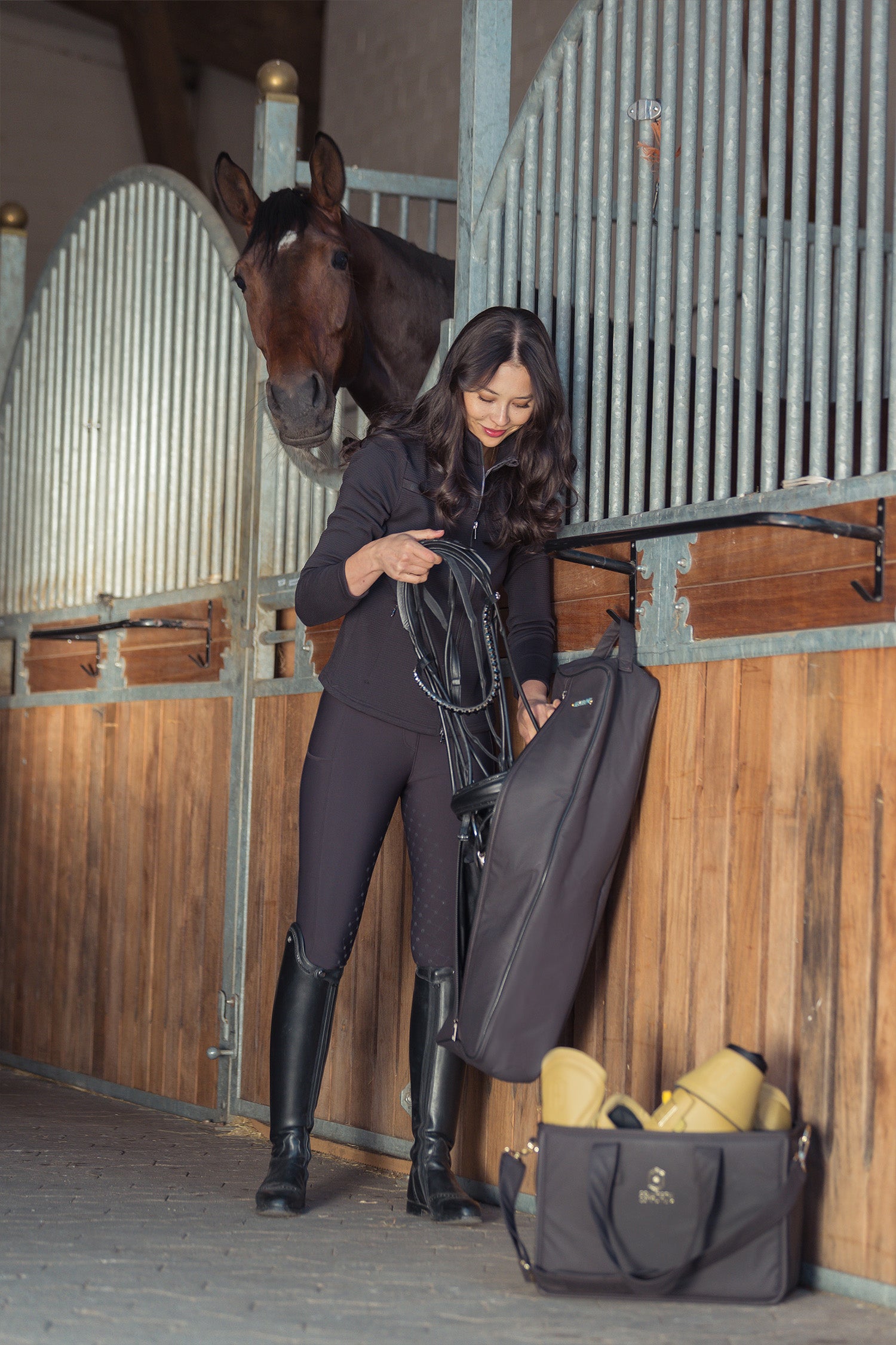Invändigt har väskan smarta fack och avdelare som hjälper dig att organisera dina saker så att allt är lätt att hitta. Den bärs smidigt i handtaget eller med den justerbara axelremmen när du är på språng mellan box, transport och tävlingsbana.