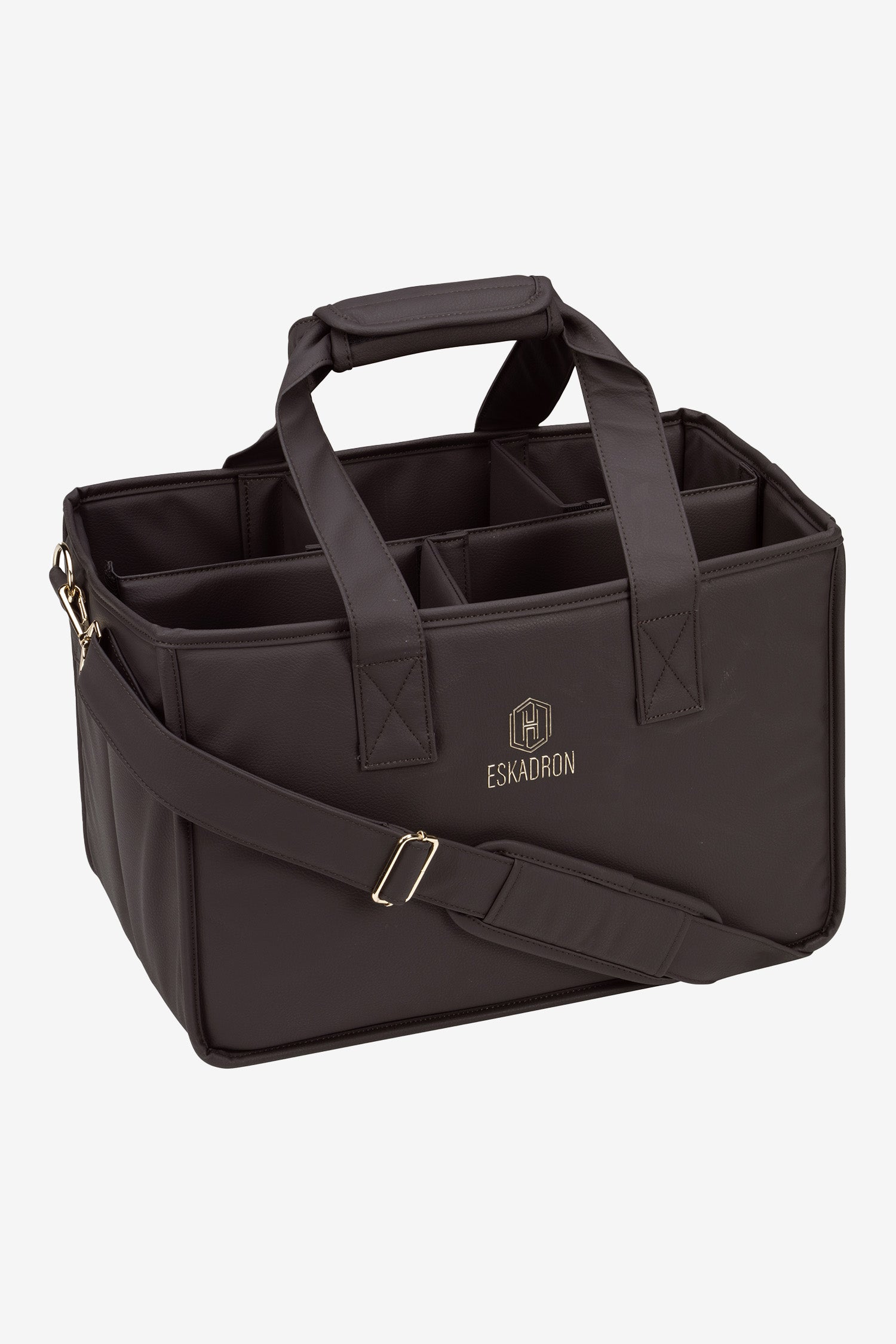 Eskadron Faux Leather Grooming Bag är en elegant och praktisk ryktväska i slitstarkt konstläder, perfekt för att hålla ordning på borstar, pälsglans, hovkrats och annan utrustning i stallet eller på tävling. Den stilrena designen med guldfärgade metalldetaljer och Heritage-emblem gör den lika snygg som funktionell.