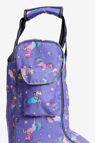 En söt hjälmväska från Equipage med enhörningsmotiv. Skyddar hjälmen mot fukt, repor och stötar. Stängs enkelt med dragkedja och har en liten ficka framtill för handskar, nycklar eller liknande.