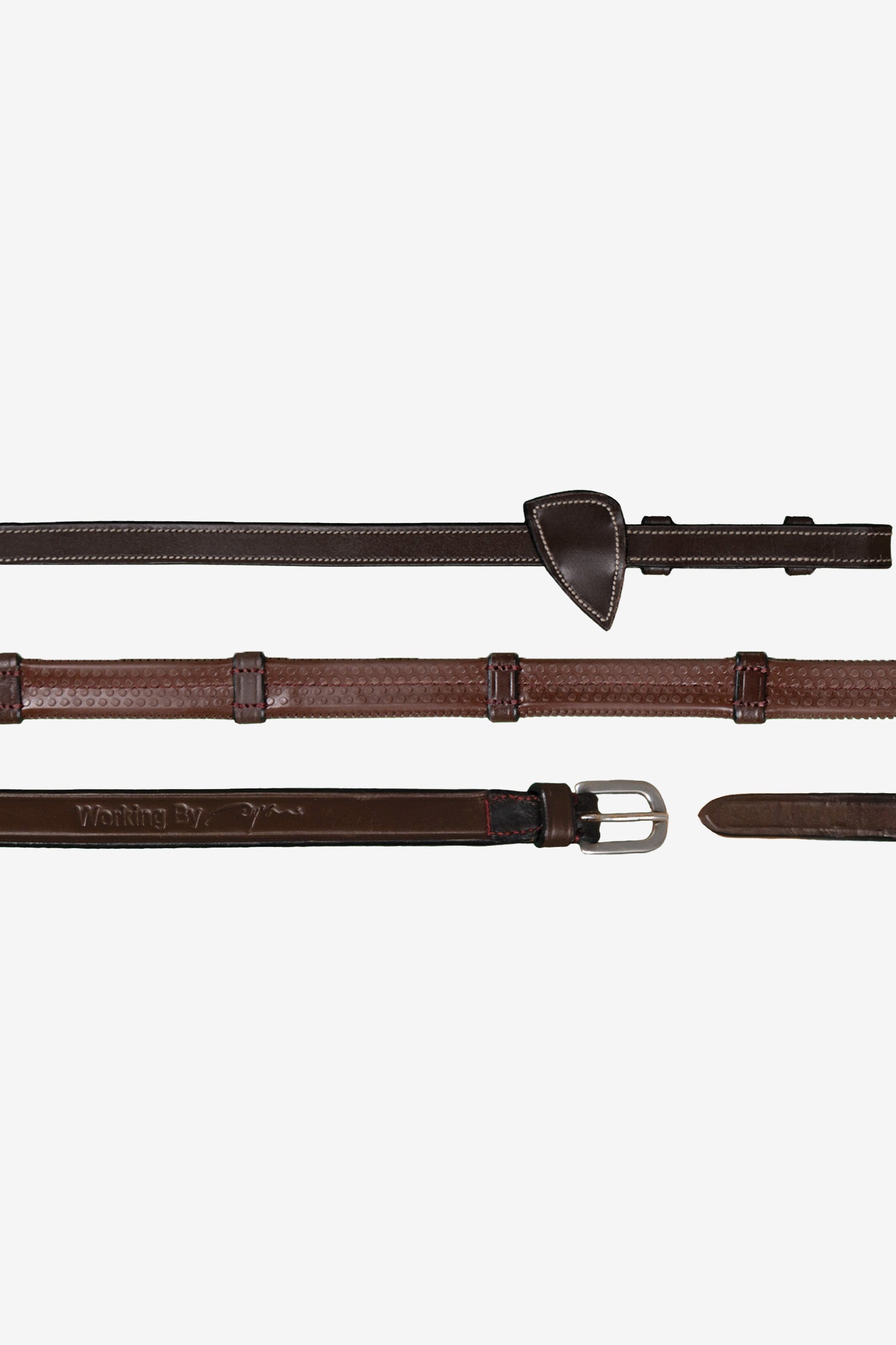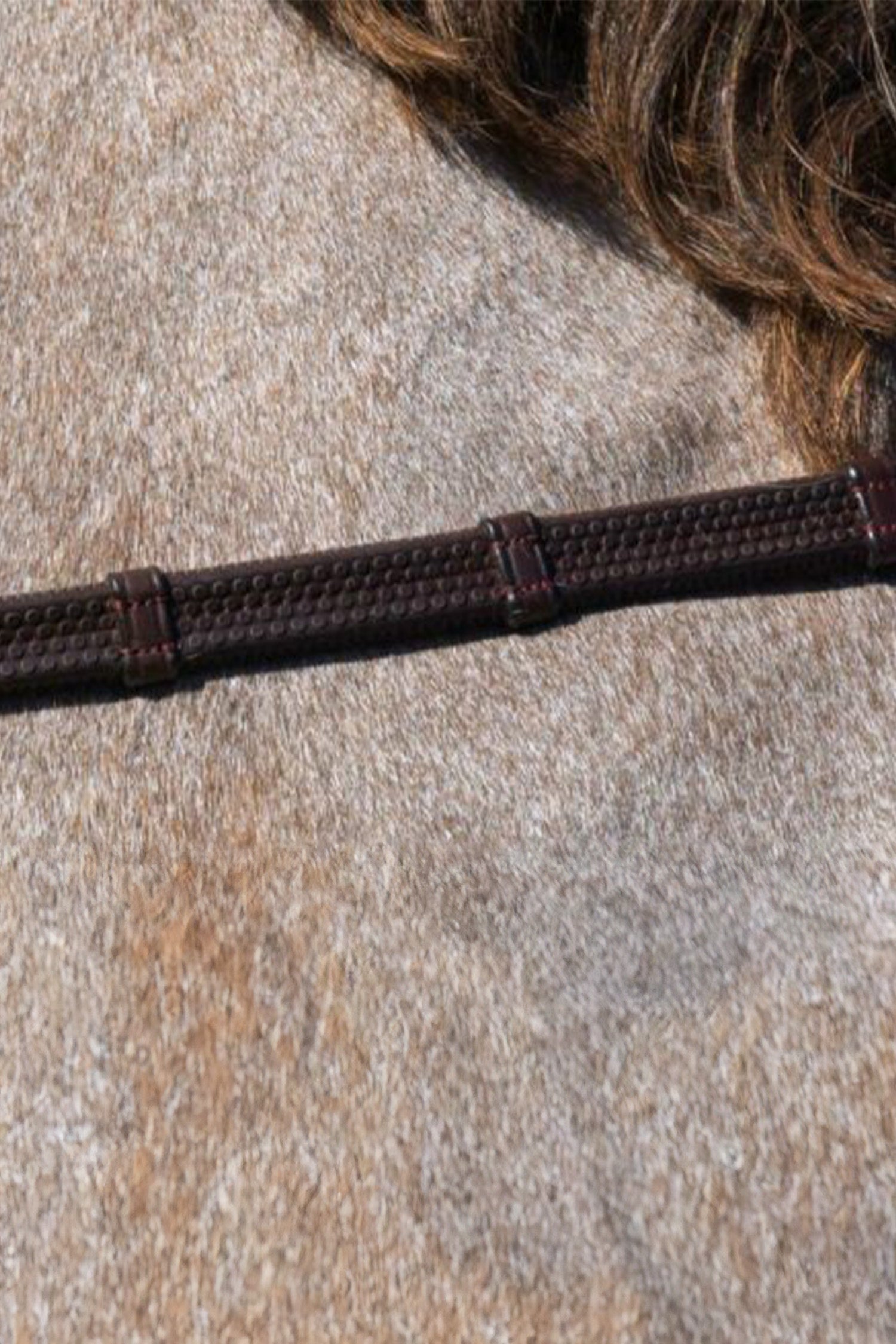 Dy'on 1/2" Rubber Reins With 7 Leather Loops från Working Collection är utvecklade för ryttare som söker maximalt grepp, flexibilitet och kontroll i alla situationer. Med en 1/2" (13mm) bred gummiyta kombineras mjukhet och styrka för ett säkert och följsamt grepp, samtidigt som de 7 jämnt placerade läderstoppningarna hjälper till att hålla en jämn tygellängd och förhindrar glidning.