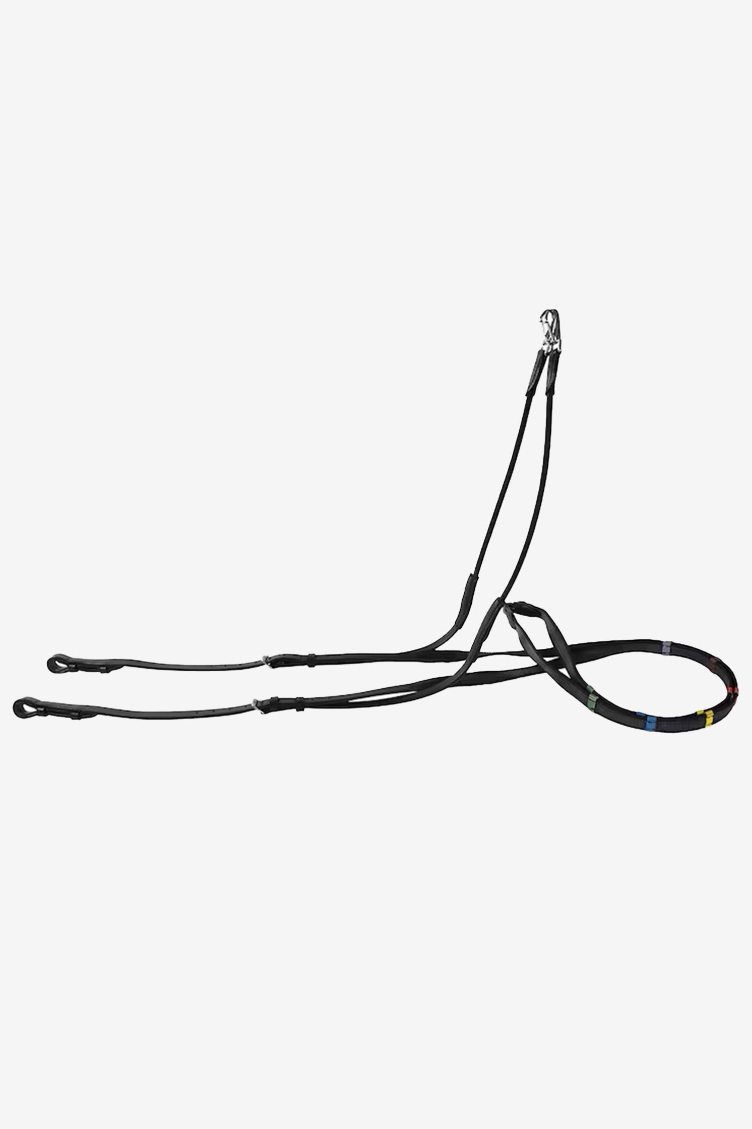 En funktionell och mångsidig lösning som kombinerar halsrem och förbygel i ett. Alla remmar är helt justerbara och avtagbara, vilket gör det enkelt att anpassa hjälptygeln efter både häst och ryttare.