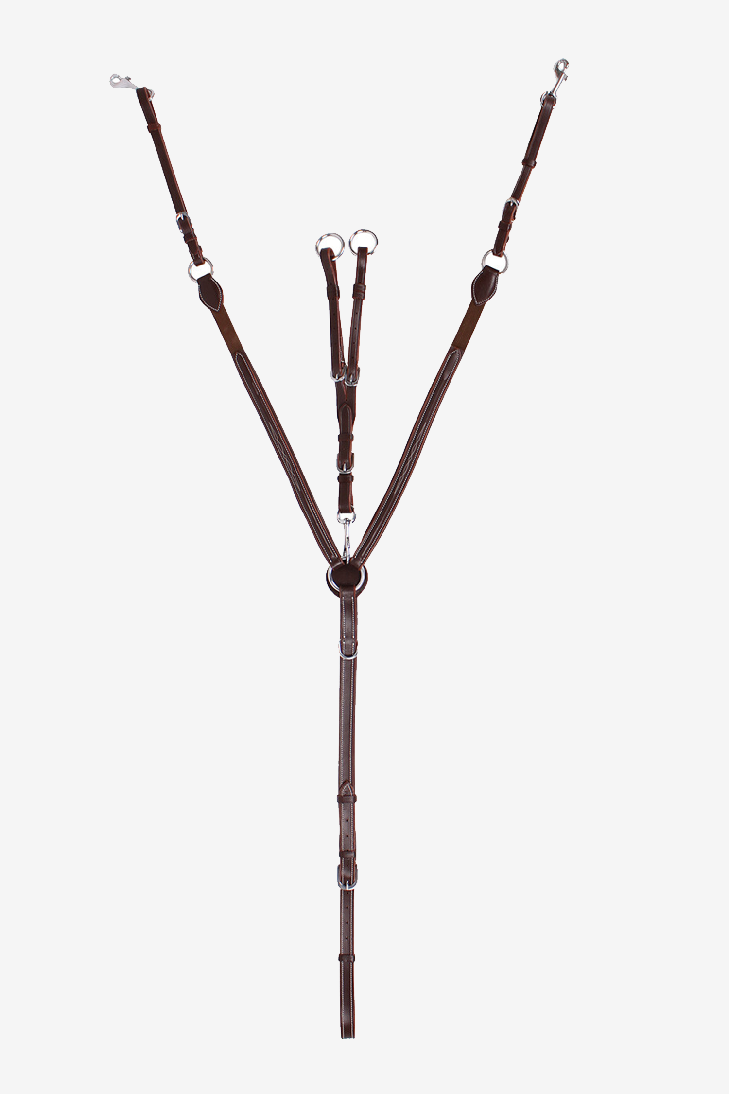 Bröstan har en avtagbar löpande martingal med praktiska snäppfästen, vilket gör det enkelt att anpassa utrustningen efter hästens behov och dagens ridpass. De elastiska insatserna vid sadelfästet ger ökad rörelsefrihet och en följsam passform, samtidigt som allt hålls stadigt på plats.