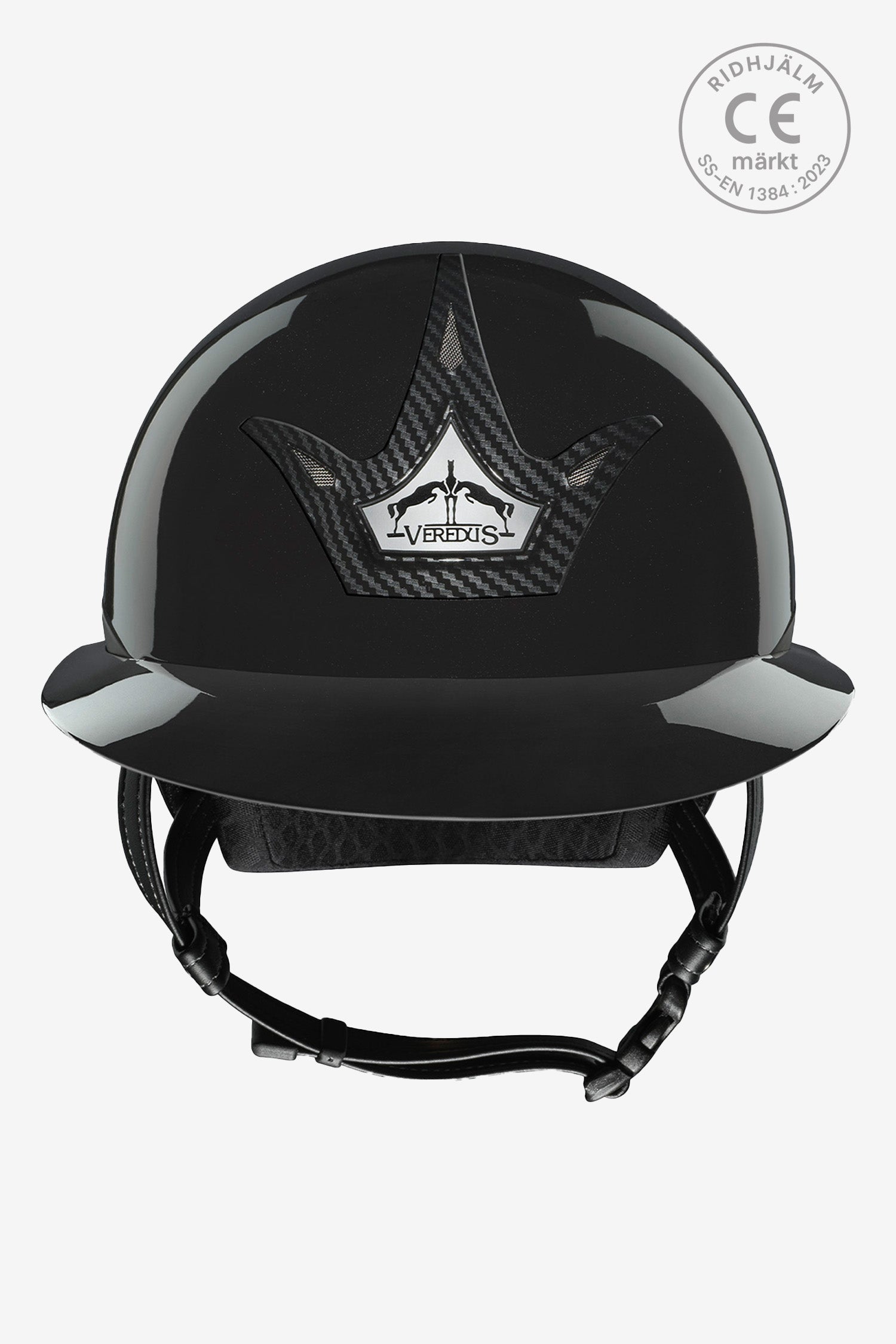 Veredus Carbon Gel GST Wide Peak Glossy Svart är en exklusiv och tekniskt avancerad ridhjälm som kombinerar högsta säkerhet med en elegant och modern design. Hjälmen är utvecklad med Carbon Gel Safety Technology, där NitrexGel och kolfiber samverkar för att ge maximal stötdämpning och styrka – samma teknik som framgångsrikt används i Veredus prisbelönta benskydd.