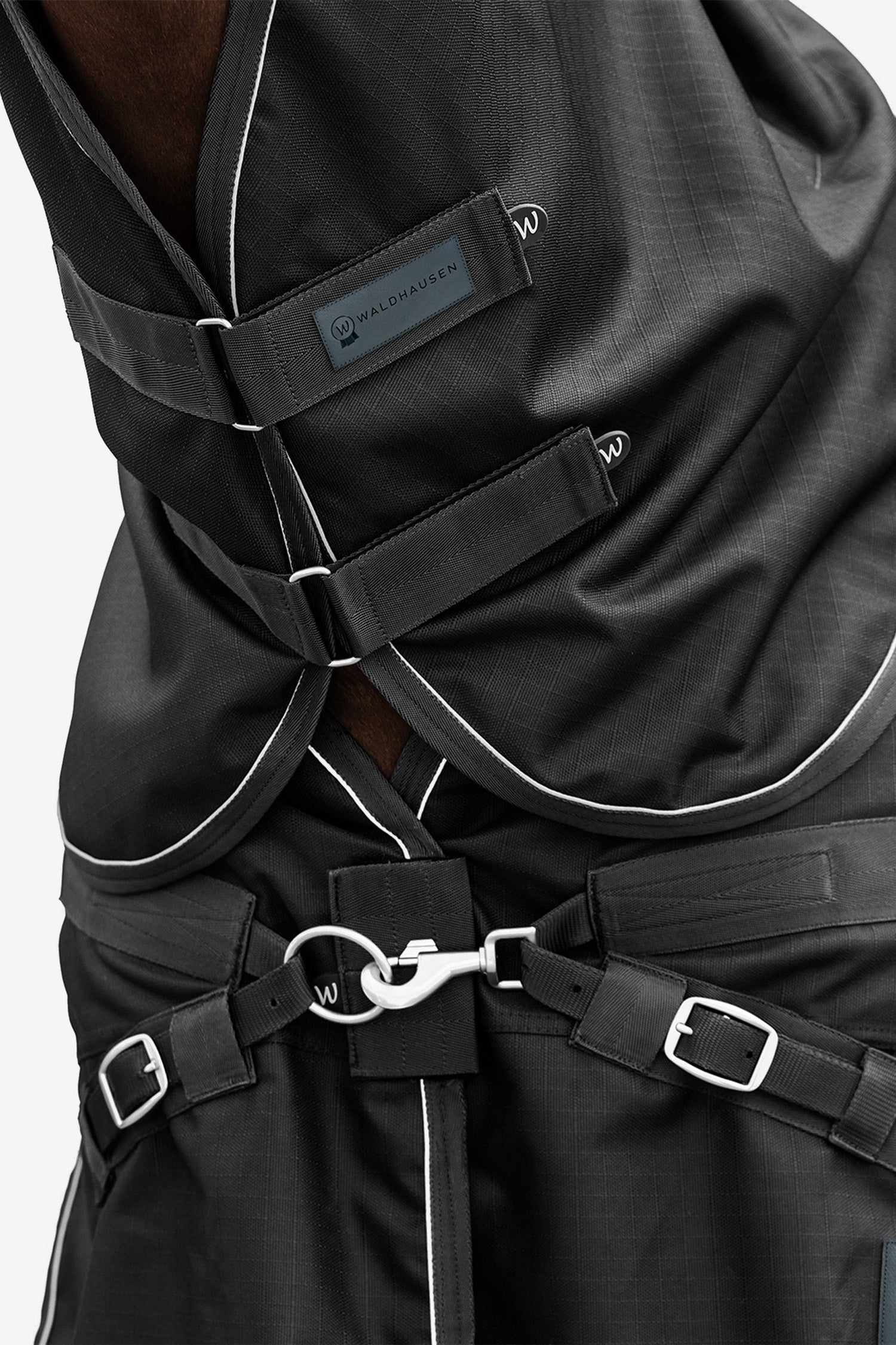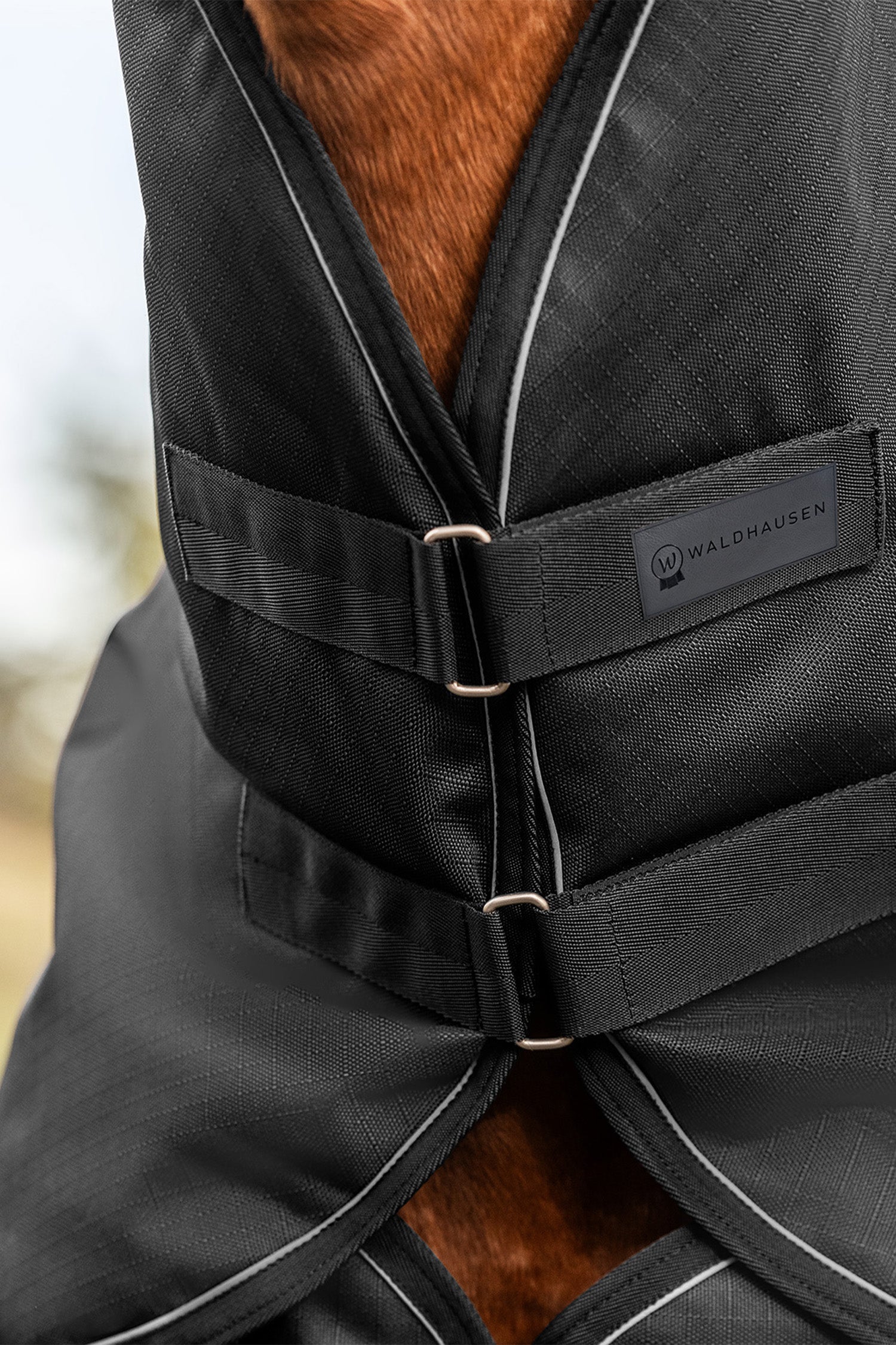 Denna halsdel är det optimala tillägget till Waldhausens SCANDIC-uttäcken och ger din häst extra skydd under kyliga och blöta dagar. Tillverkad i slitstarkt 1200 denier ripstop-tyg som är både vattentätt och andningsbart, med en 200 g fyllning som ger värme och komfort.
