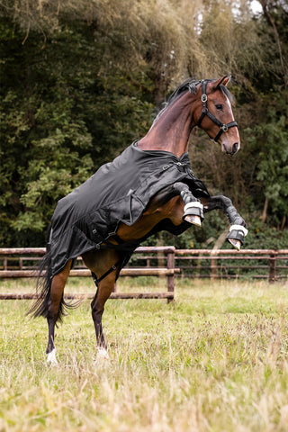 Halsdelen är tillverkad i slitstarkt 1200 denier ripstop-yttertyg som både är vattentätt och andas, vilket gör den idealisk för alla väderförhållanden. Det mjuka innerfodret ger extra komfort för hästen, samtidigt som den skyddar mot kyla, regn och vind.