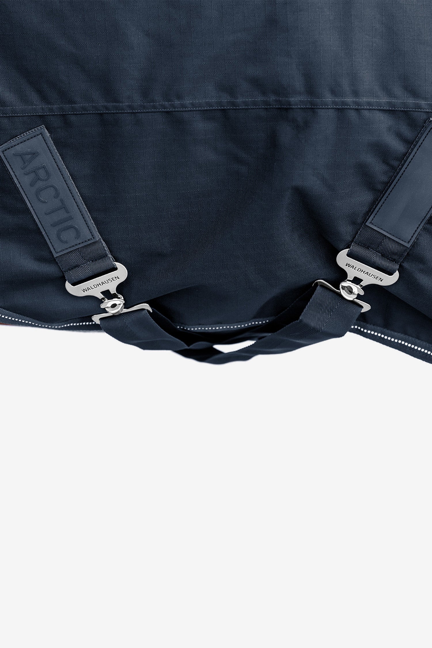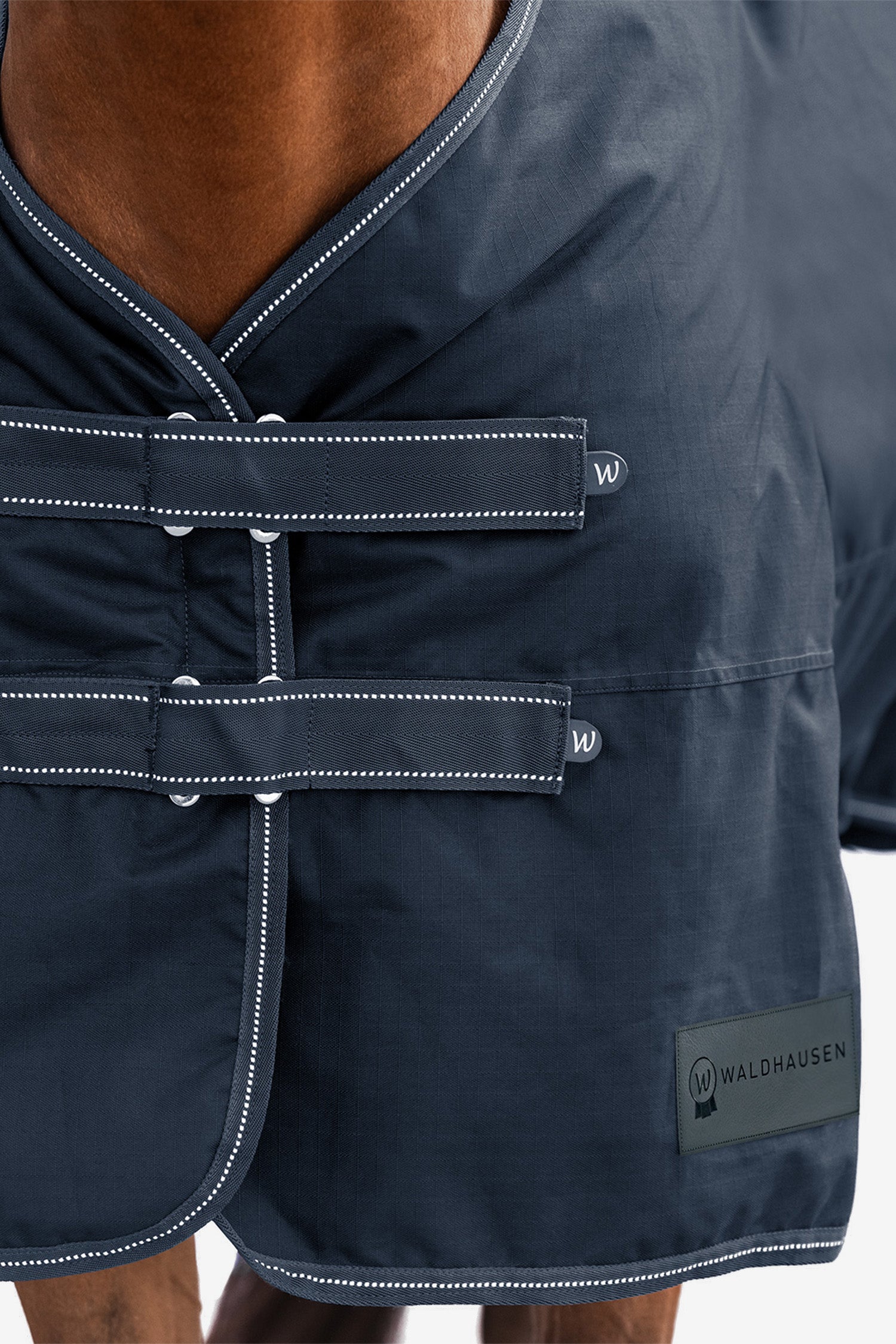 Med Waldhausen Arctic Turnout Rug High Neck, 200 g får din häst ett pålitligt skydd även under riktigt tuffa väderförhållanden. Den högre halsmodellen förhindrar skav vid manke och mankam, medan den slitstarka utsidan i 600 denier ripstop effektivt står emot vind och nederbörd.