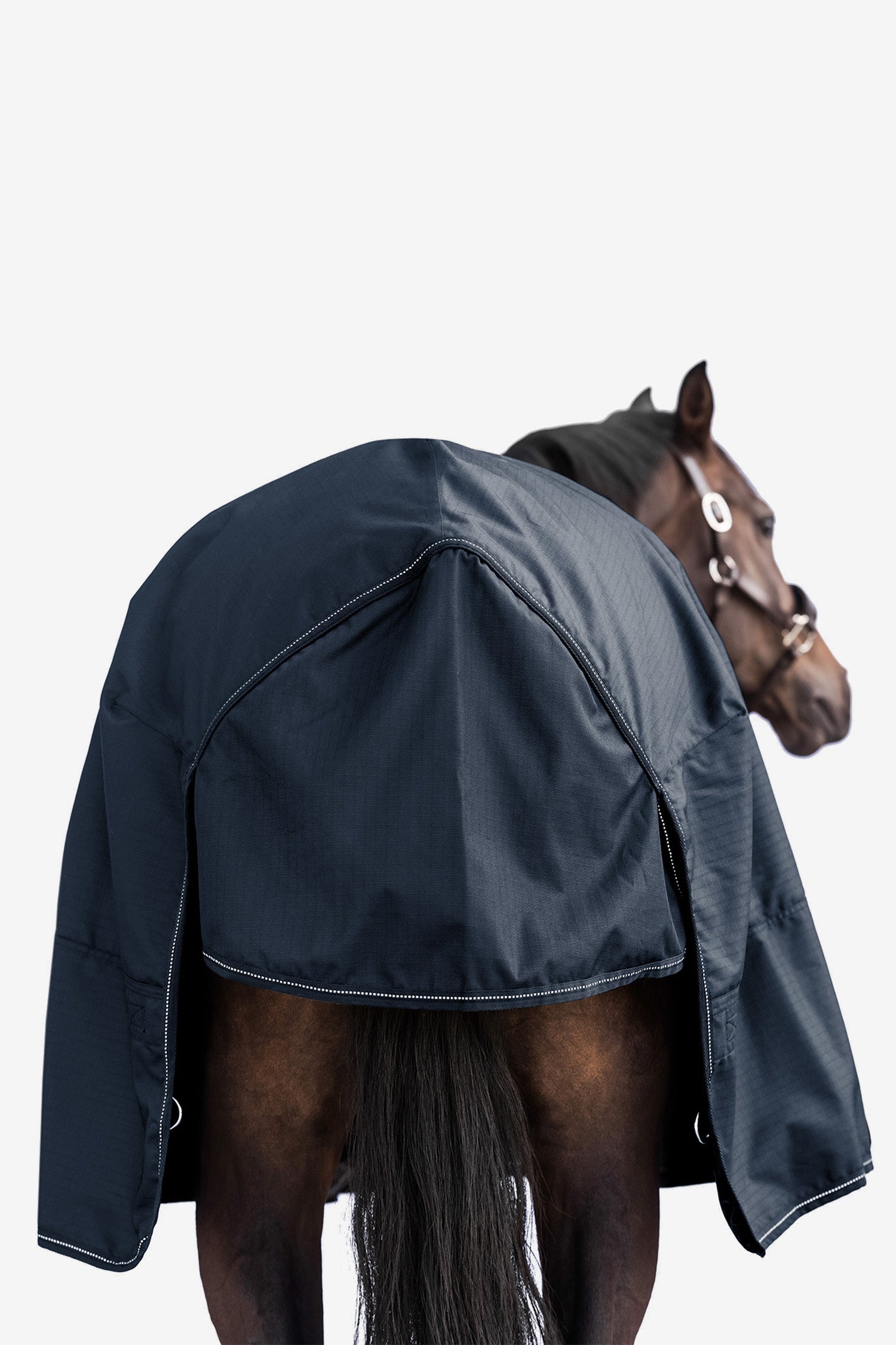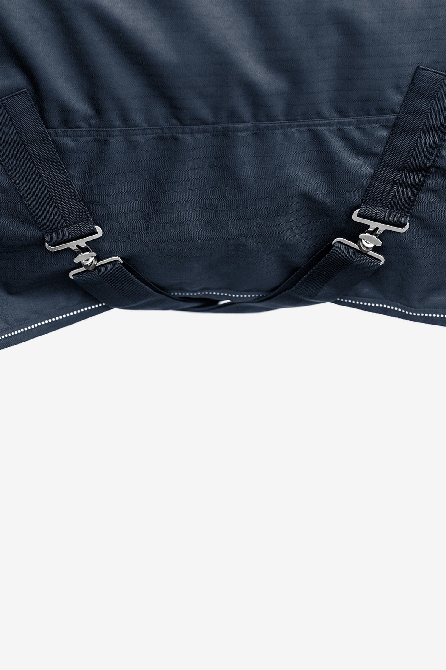 Ge din häst pålitligt skydd och komfort under kyliga, fuktiga dagar med Waldhausen Nordic Turnout Rug High Neck, 200 g. Det högre halsutskärningen förhindrar skav vid manke och mankam, samtidigt som det slitstarka 600 denier ripstop-tyget skyddar mot vind och regn. Med en fyllning på 200 g håller täcket hästen varm även under svalare väderförhållanden.