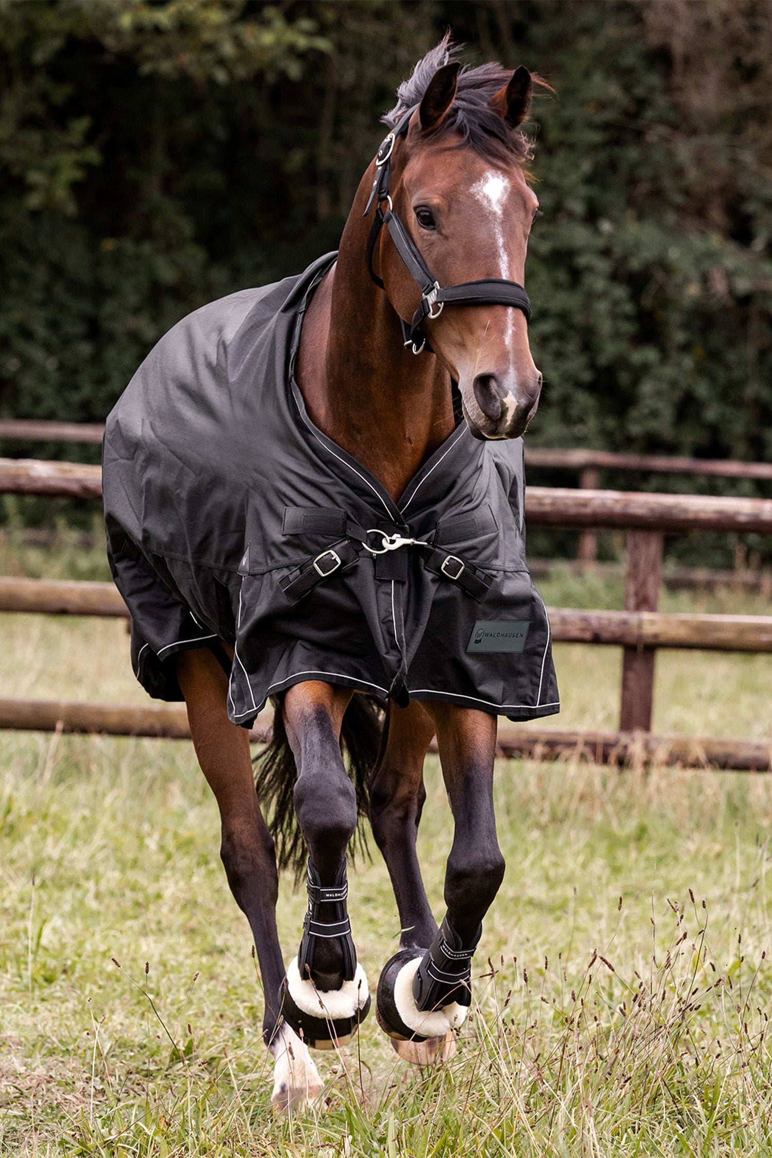 Den nya V-frontknäppningen med extra kardborre, samt kick pleat för full rörelsefrihet, gör att täcket sitter stabilt och bekvämt. För ökad säkerhet i mörker är det försett med reflexkantband och reflextryck på den extra stora svansfliken.