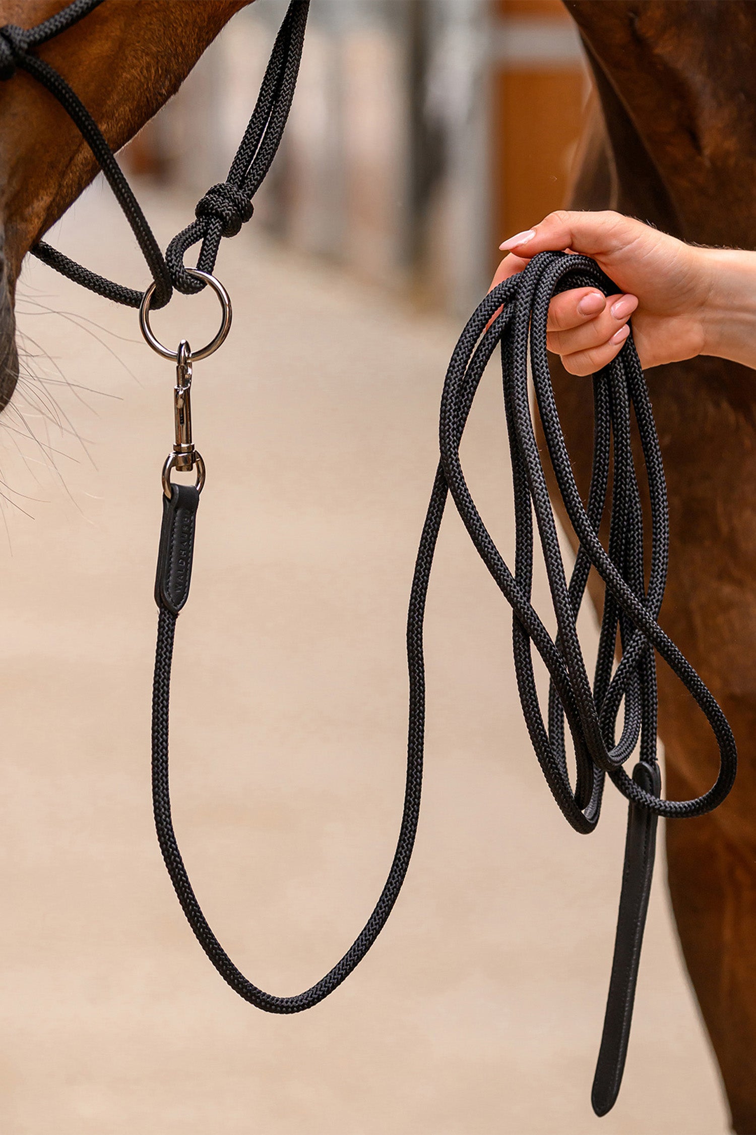 Denna knutgrimma från Waldhausen är ett utmärkt val för dig som vill ha tydlig men samtidigt skonsam kommunikation med din häst. Tillverkad i slitstarkt material kombinerar grimman hög hållbarhet med en mjuk och bekväm passform.