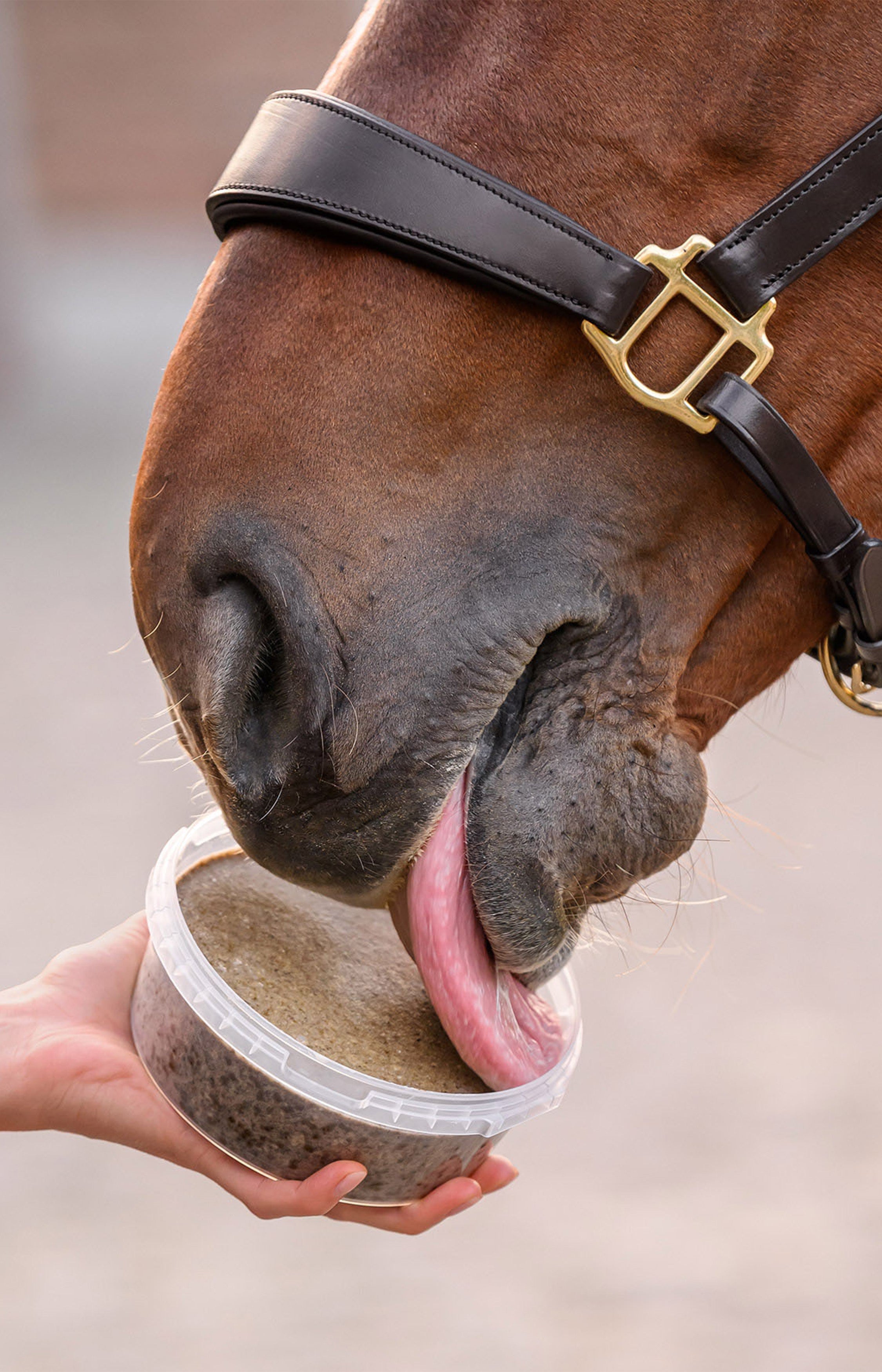 Op til 300 g pr. dag, afhængigt af hestens behov.