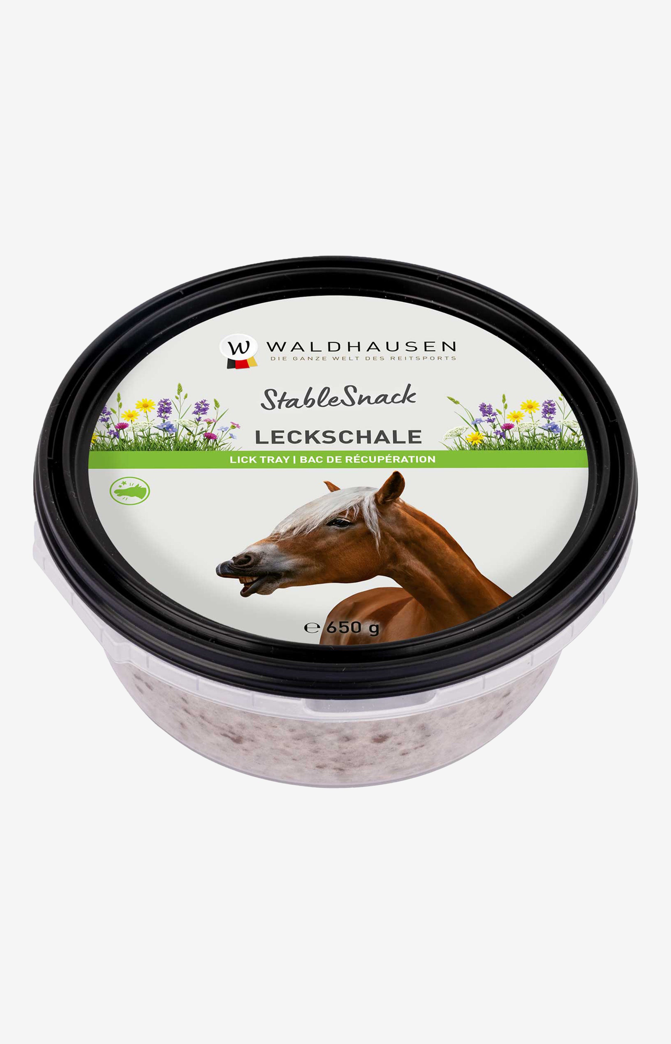 Waldhausen StableSnack slikkeskål er et velsmagende og aktiverende tilskudsfoder til hest, beriget med naturlige urter. Slikkeskålen er udviklet for at give hesten et beroligende og belønnende øjeblik og er ideel som aktivering i stalden, under transport eller i stressende situationer som smedebesøg, dyrlægebesøg eller klipning.