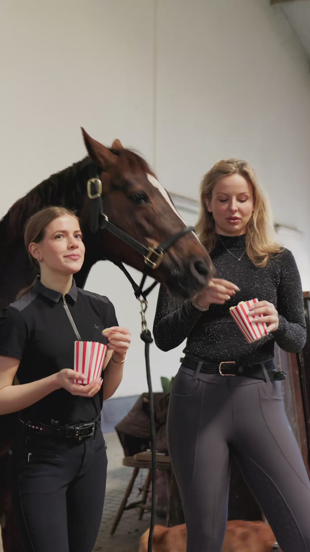 Die charmante rot-weiß gestreifte Popcorntüte macht sie außerdem zu einem perfekten Geschenk – oder einfach zu etwas Besonderem im Stall.