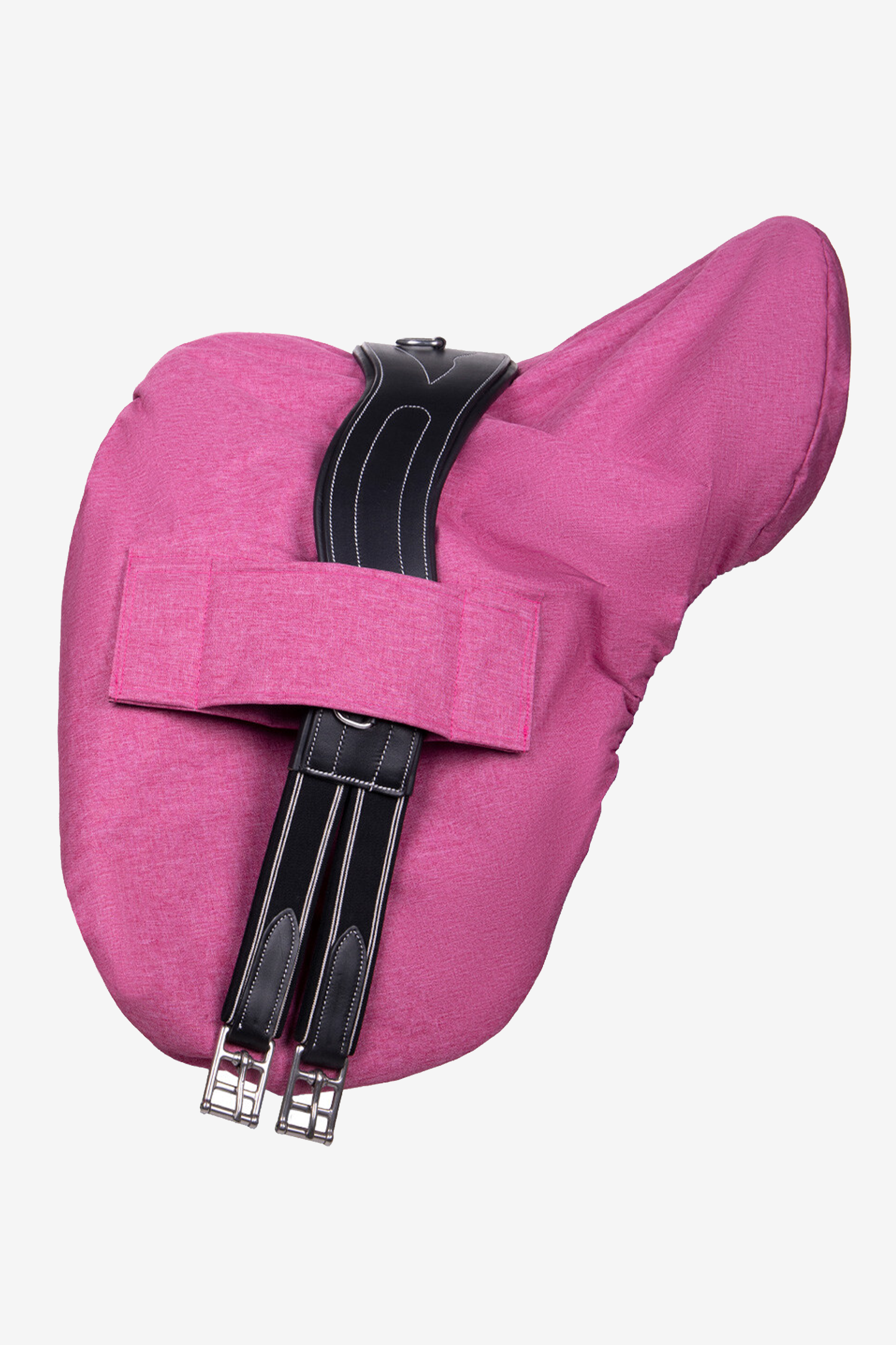 Der Sattelüberzug ist mit Öffnungen mit Klettverschluss ausgestattet, durch die die Steigbügelriemen geführt werden können, sodass er auch während des Reitens sicher sitzt. An den Seiten befinden sich außerdem Öffnungen für den Sattelgurt, sodass der Überzug einfach zusammen mit dem Sattel verwendet werden kann, ohne die Passform zu beeinträchtigen.