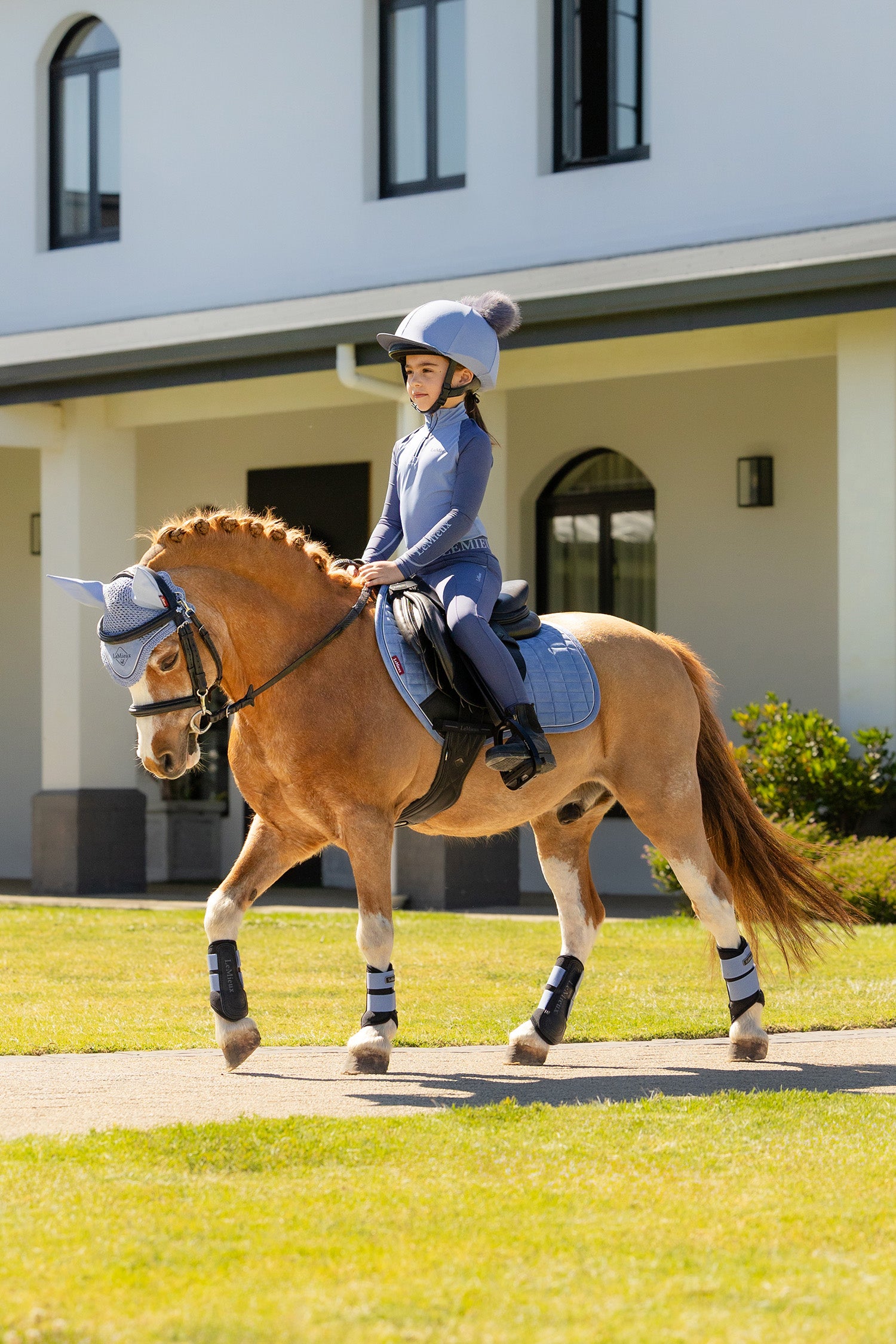Buitenstof van suède-imitatie met vormvaste constructie. Binnenzijde van bamboemix voor hoog comfort, ventilatie en vochtregulatie. Ontworpen voor nauw contact en optimale pasvorm voor pony's.