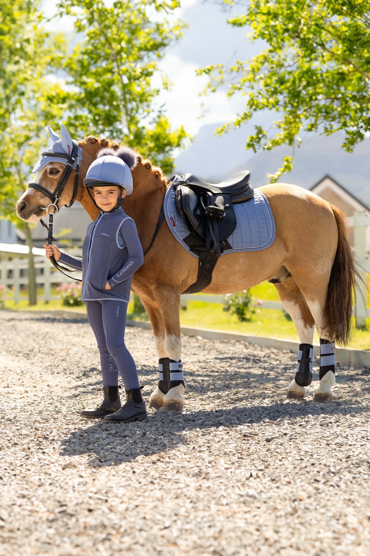 LeMieux Mini Suede Close Contact Square is een stijlvol en functioneel zadeldek – speciaal ontworpen voor pony's en springzadels.