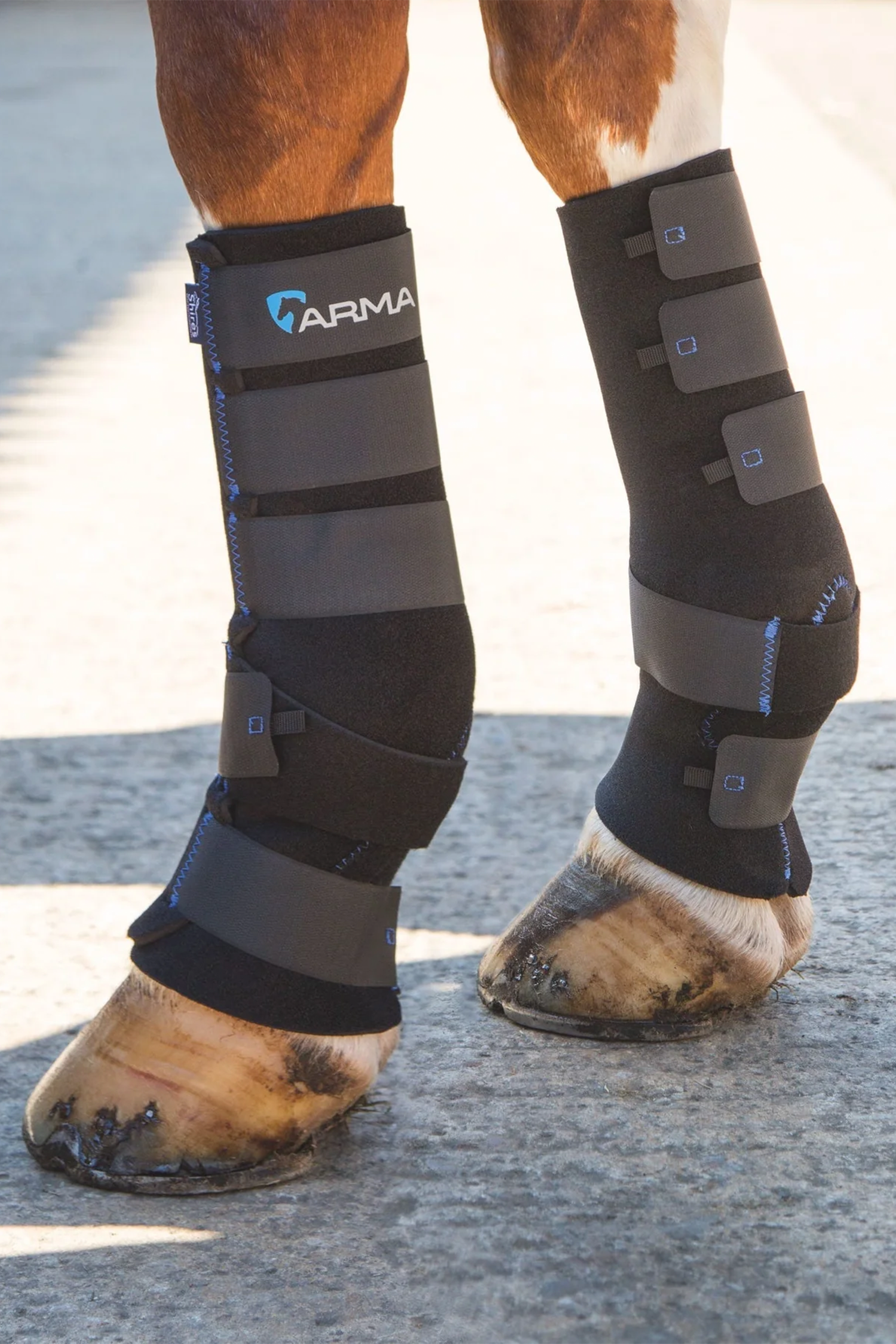 ARMA deluxe mud socks har ergonomisk formgivning för att säkerställa en nära och bekväm passform, vilket ger maximalt skydd mot lerfeber. Tät neopren skyddar mot stötar och skrapsår och har perforeringar för luftflöde som hjälper till att ventilera benet för att undvika överhettning. Säkra remmar som stängs vid beröring. Lämplig för fram- eller bakben. Set med 2 st.
