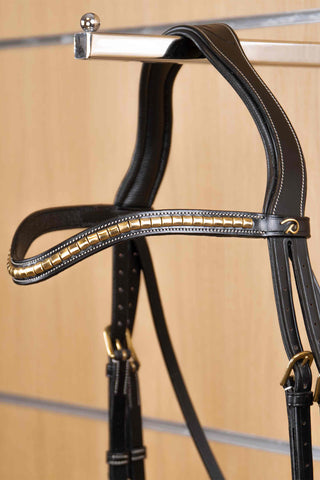 Pannbandet är lätt böjt vilket ger ett elegant intryck och följer hästens huvudform.
