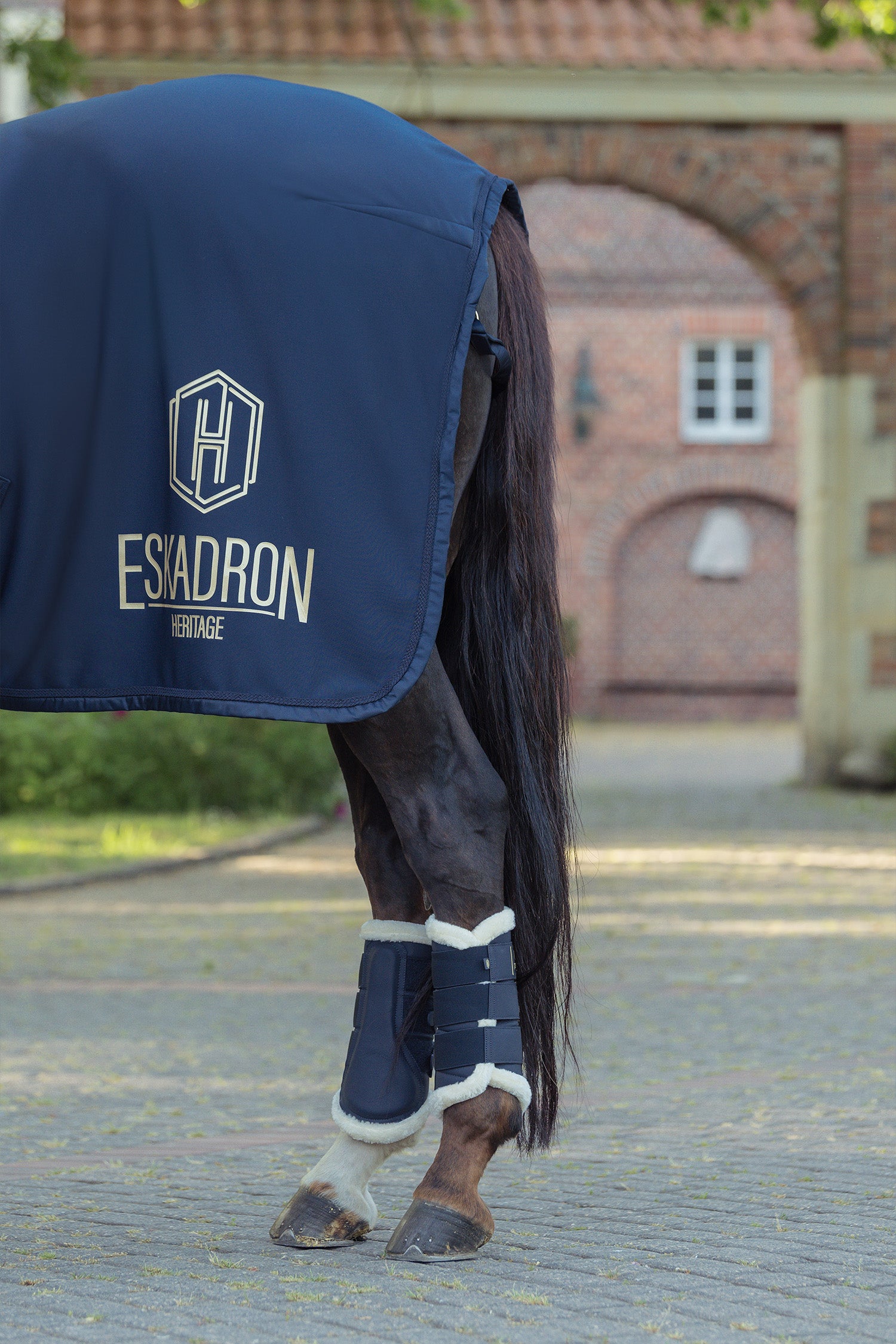 Den mjuka fuskpälskanten runt kanterna minskar risken för skav och gör skydden extra bekväma, även för känsliga hästar. Elastiska kardborreknäppningar gör dem enkla att ta på och av, samtidigt som de ger en säker, justerbar passform. Heritage-emblem och liten flaggetikett sätter en elegant finish.