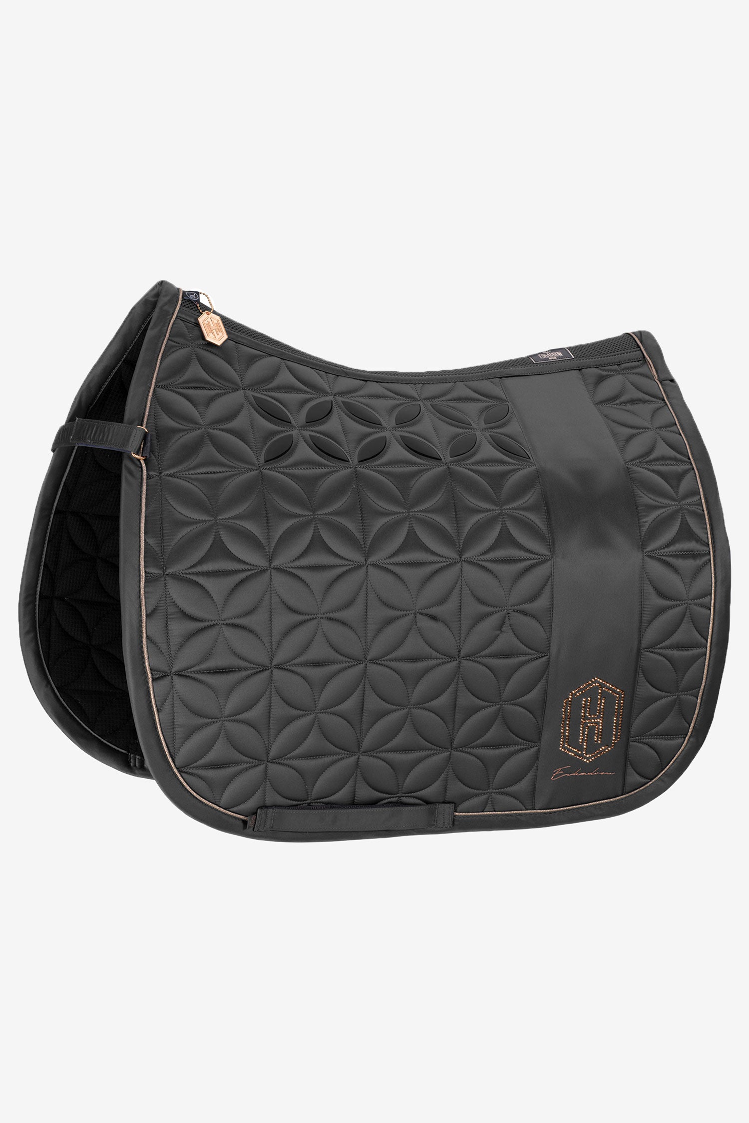 Utöver har eleganta detaljer i form av kristaller, blankt kantband, passpoal i skimrande lurex samt Eskadrons ikoniska logga, broderad på båda sidor, så har schabraket dessutom försetts med AniSlip-silkon på ovansidan som förhindrar att det glider under sadeln. Ryggkanalen i mesh optimerar ventilationen och säkerställer ett bra luftgenomsläpp för att hjälpa till med att hela tiden hålla hästen torr och bekväm - även under de tuffaste passen.