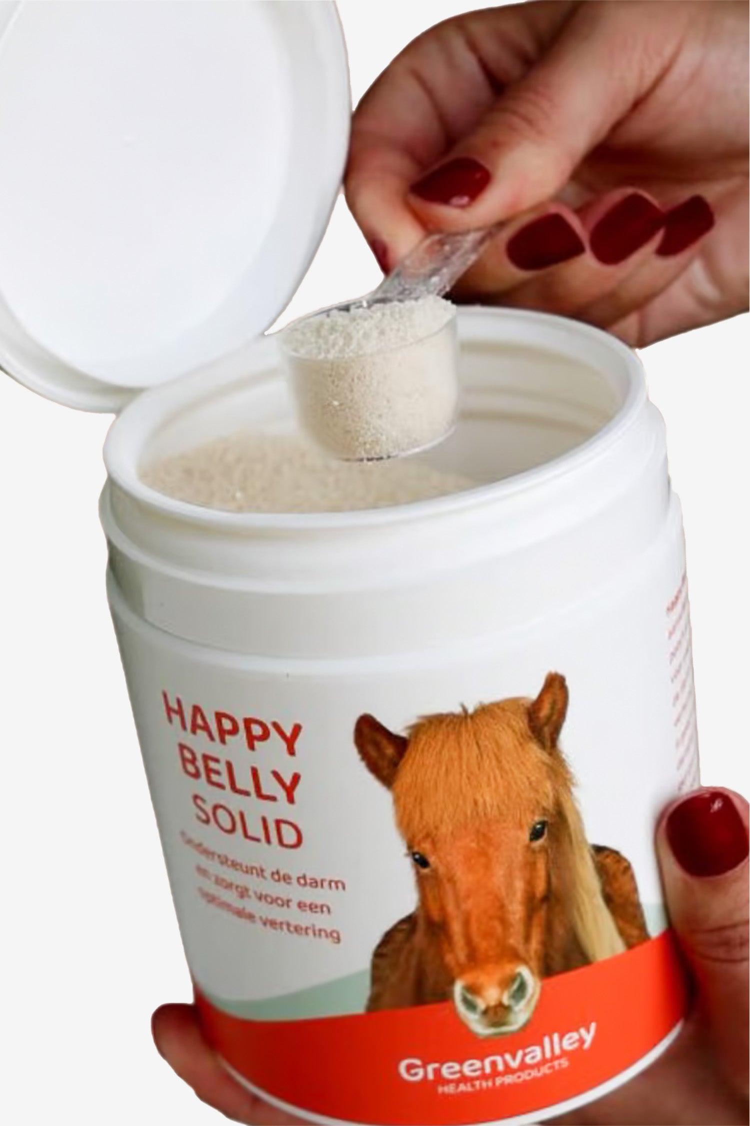 Happy Belly Solid är ett kompletterande foder för hästar och ponnyer. Det ger stöd för tarmen och optimal matsmältning. Happy Belly Solid är bra för en balanserad tarmflora och stödjer frisk hud och päls. Happy Belly Solid innehåller kalciumbutyrat.