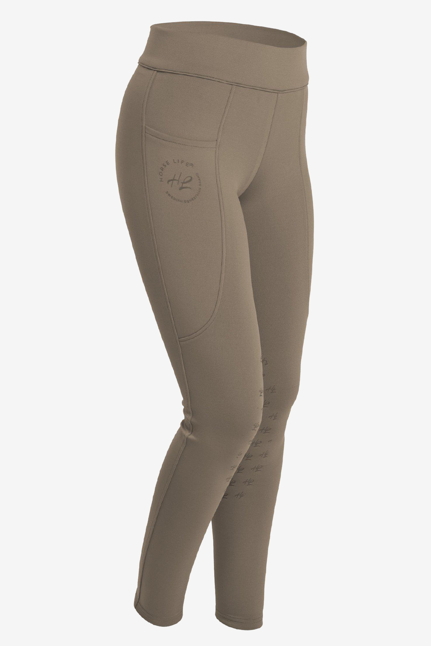 Den höga midjan med monterad bred resår ger stöd och en smickrande siluett, samtidigt som seamless-konstruktionen på insidan av låren minskar risken för skav. På höger ben finns en djup, rymlig mobilficka som håller telefonen säkert på plats, prydd med ett diskret Horse Life-tryck.
