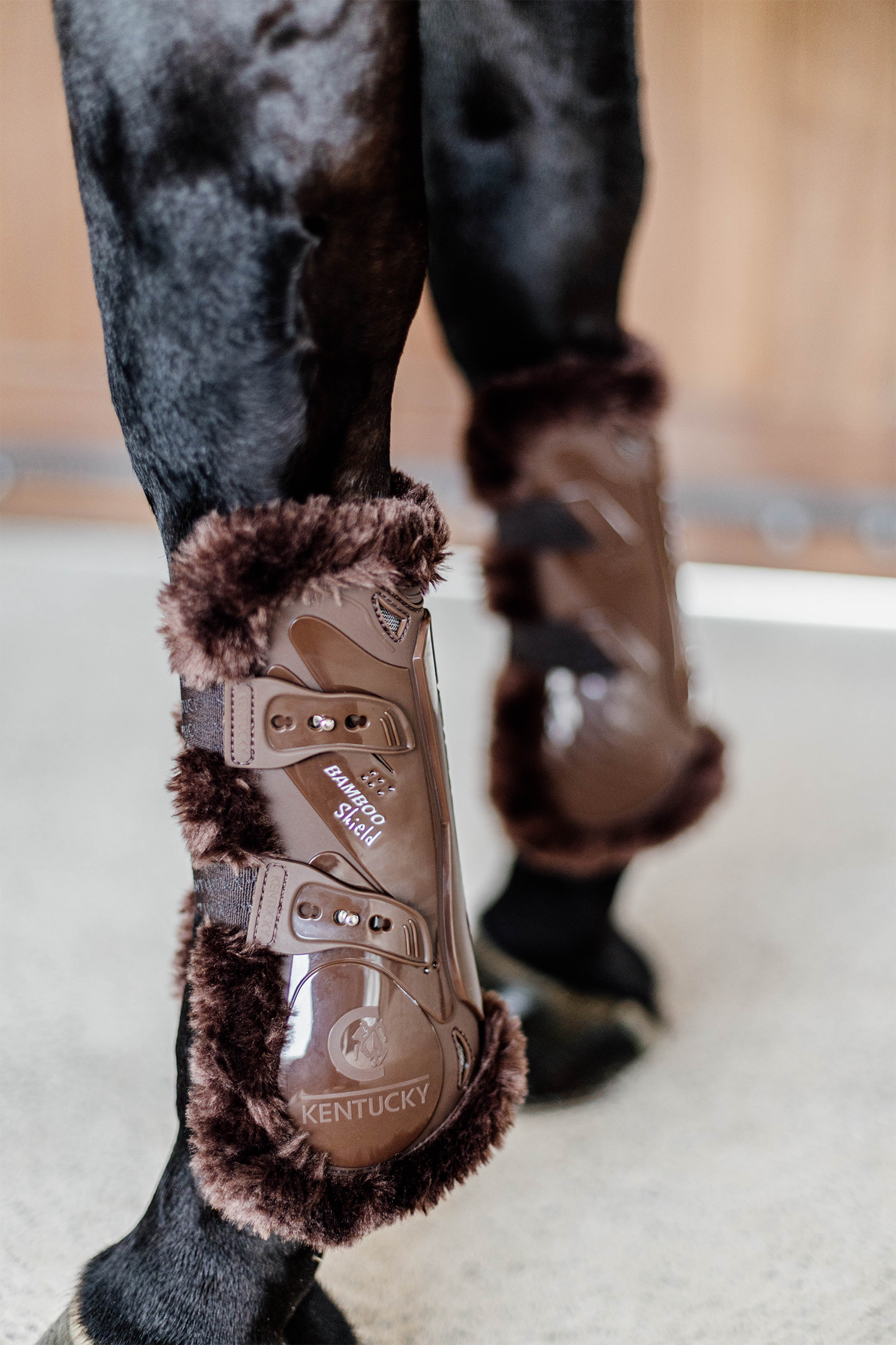 Skydden är gjorda av ett starkt TPU-skal med flera ventilationshål. Senområdet är förstärkt med Kentuckys bambusköld för att undvika penetration. Där hästen böjer på benet har Kentucky lagt till en mjuk naturgummibit för att undvika friktion.