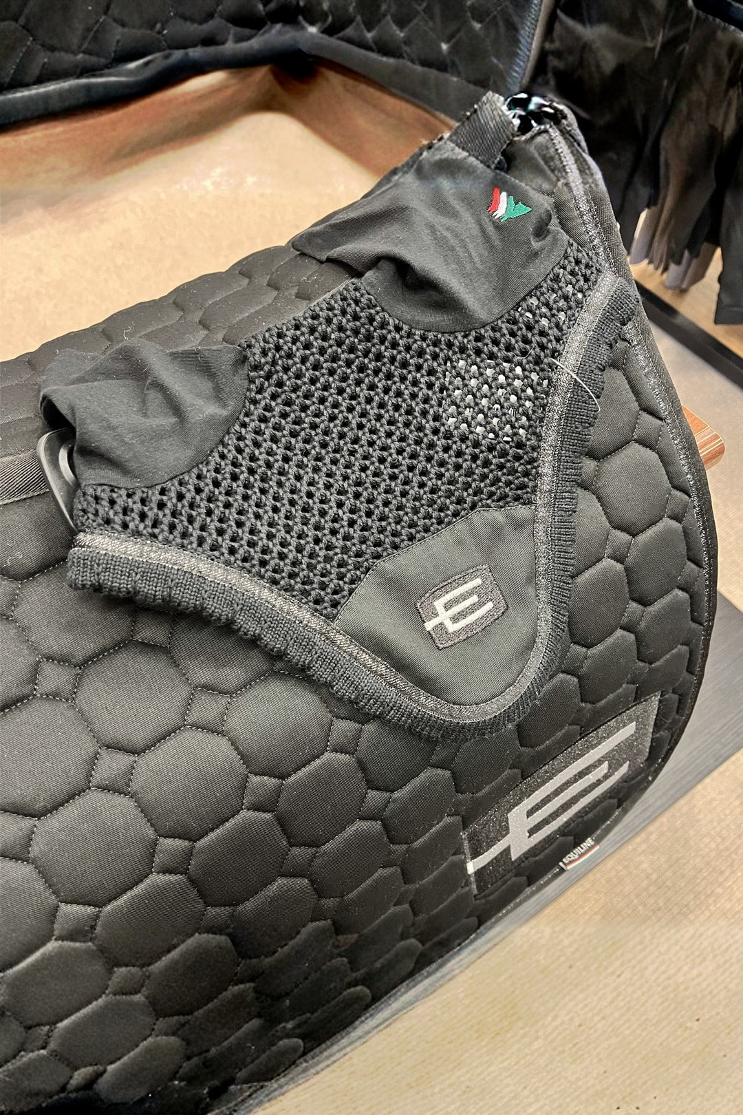 Den välkända E-loggan är snyggt placerad på huvan och ger ett exklusivt uttryck utan att ta över. De elastiska öronen ger perfekt passform även för hästar som rör öronen mycket, och den hållbara virkade fronten säkerställer att huvan håller formen över tid.