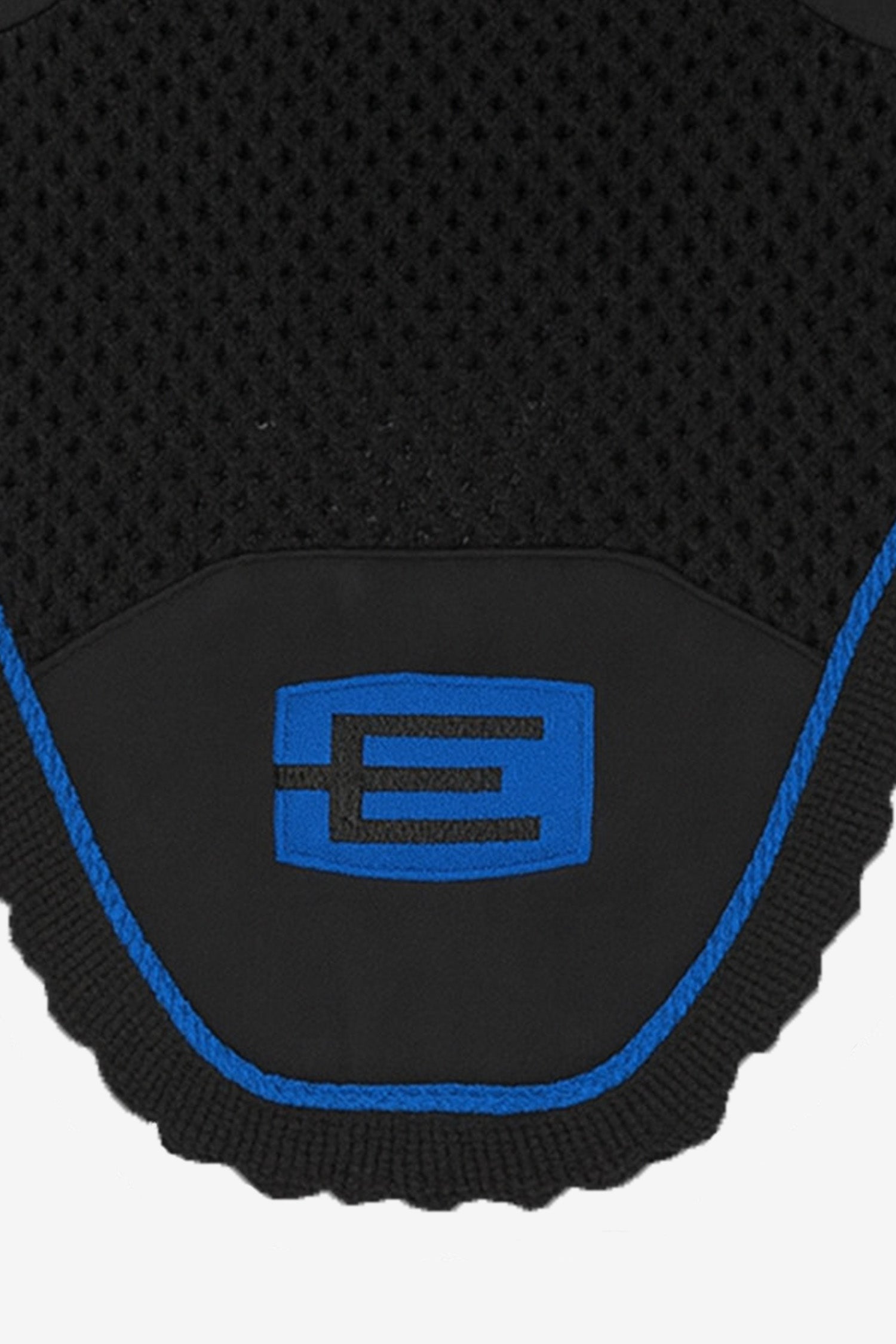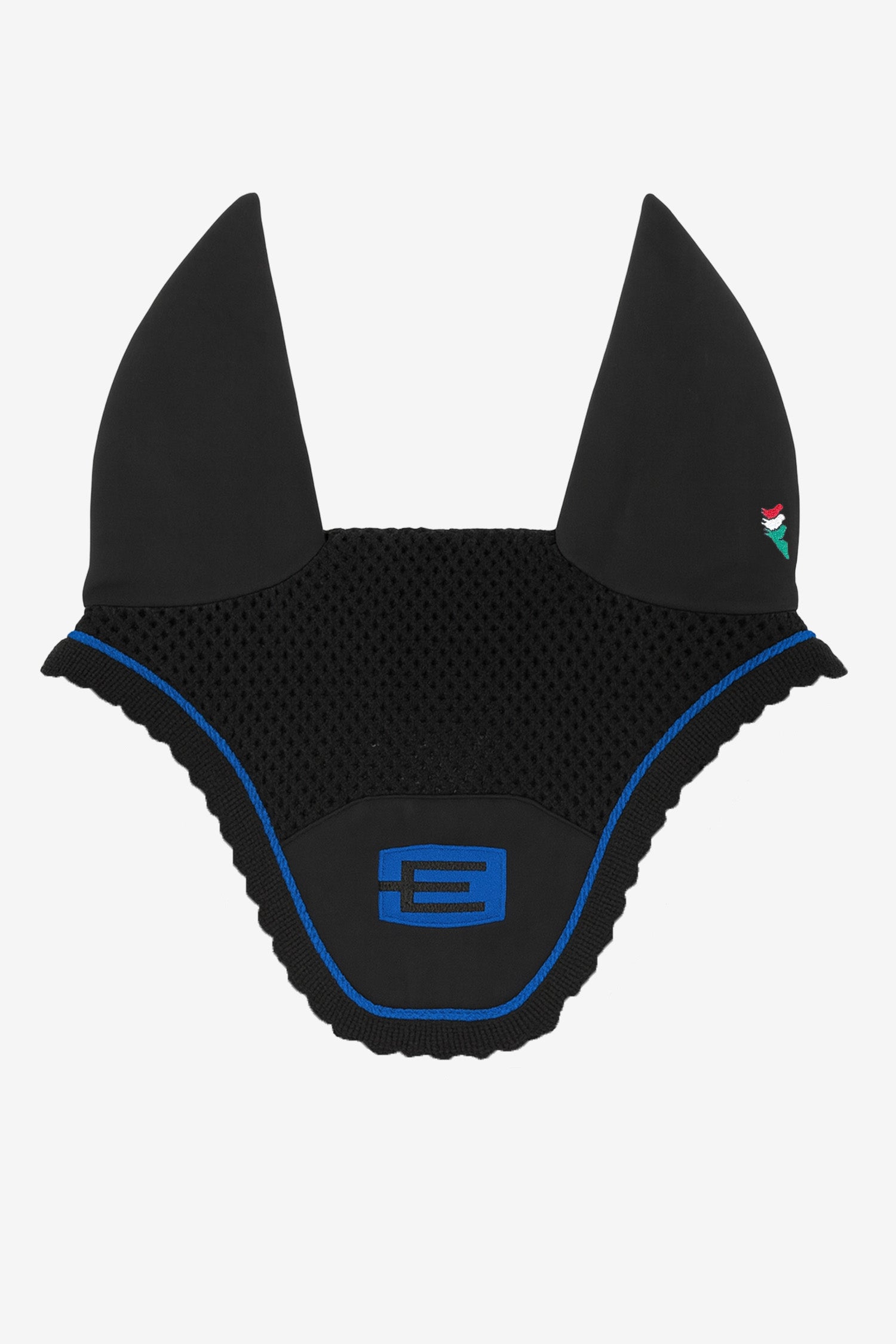 Den välkända E-loggan är snyggt placerad på huvan och ger ett exklusivt uttryck utan att ta över. De elastiska öronen ger perfekt passform även för hästar som rör öronen mycket, och den hållbara virkade fronten säkerställer att huvan håller formen över tid.