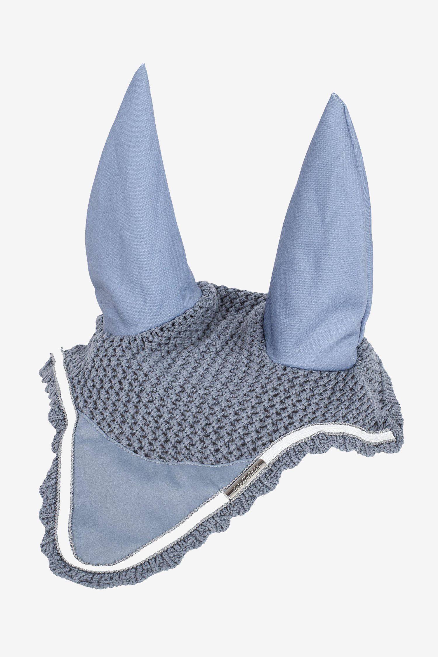 Venus-huvan från Lami-Cell kombinerar klassisk virkad bomull med elastiska öron för skön passform och effektiv dämpning av störande ljud. Dekorband med subtil silverlurex och en stilren Lami-Cell metallbadge på vänster sida ger en sober, tävlingsredo finish.