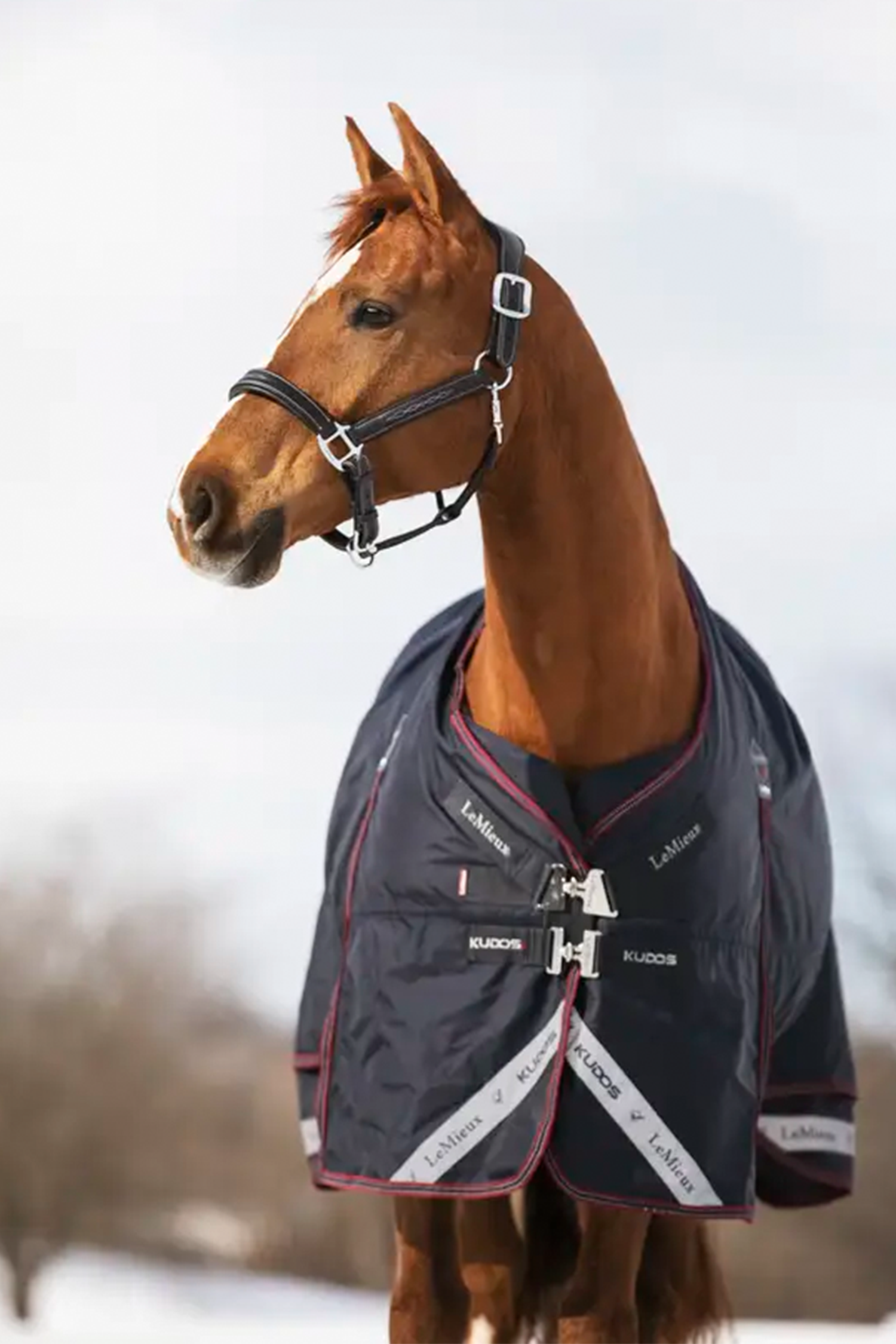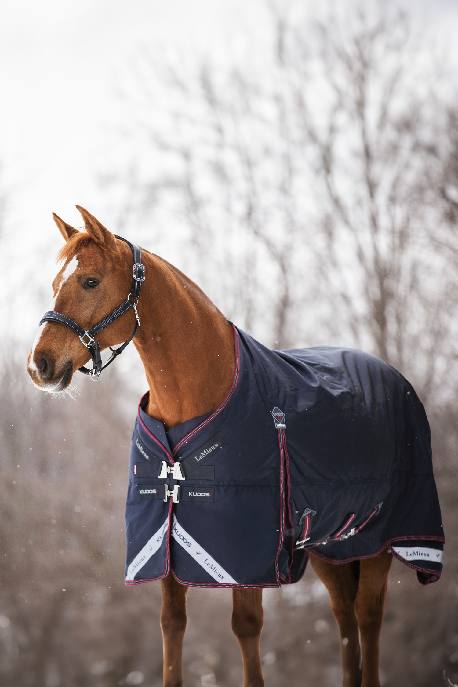 LeMieux Vintertäcke Kudos 350g Navy är ett kraftfullt, vädertåligt och värmande täcke med 350 gram fyllning, perfekt för hagvistelse och utomhusbruk under kalla och blöta dagar. Täcket är designat för att ge optimal komfort, skydd mot väder och rörelsefrihet — ett pålitligt val för stall, bete och utegång året om.