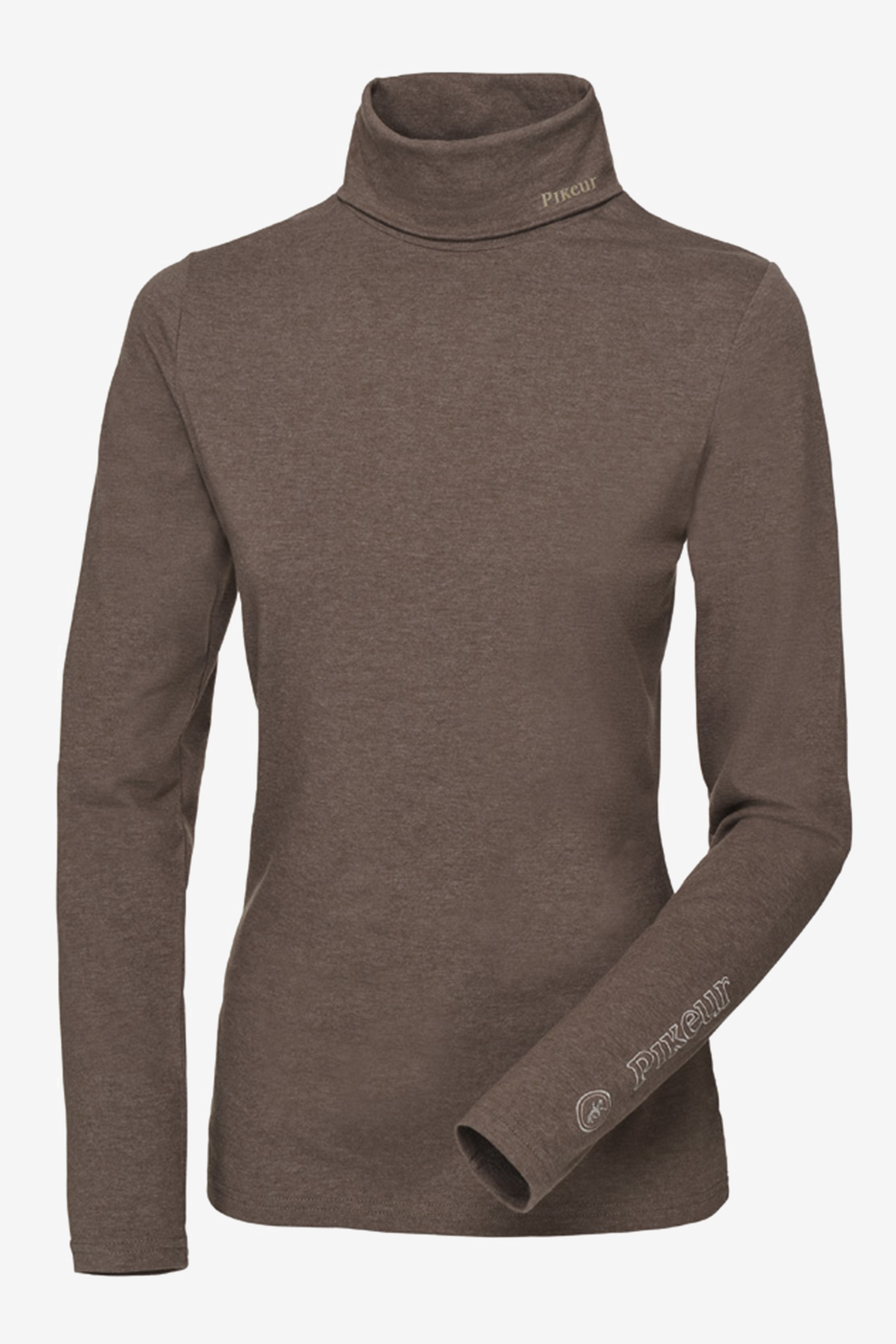 Skön polo-tröja från Pikeur med en hög hals som stänger ute den kyliga vinden under de kallare årstiderna. Prydd med stenar på ena ärmen i en snygg Pikeur logo.