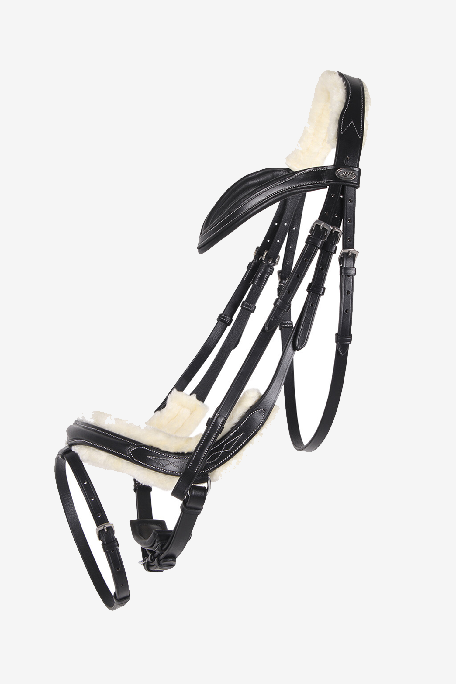 Den vågformade pannremmen, klädd i kalvskinn, fulländar den eleganta looken. Levereras komplett med matchande tyglar, och kan kombineras med övriga produkter i Ontario-serien för en stilren helhet.