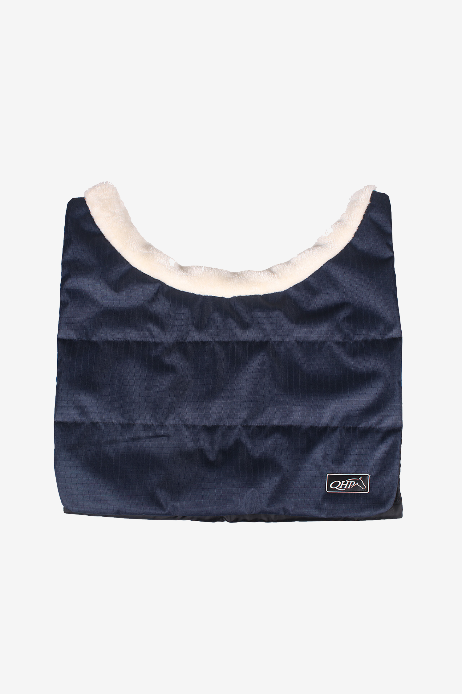 Det släta nylontyget på insidan minimerar friktion och skyddar känslig hud, medan det vattentäta materialet håller din häst torr och bekväm i alla väder. Den praktiska kardborrestängningen gör det enkelt att fästa skyddet runt täckets framknäppning – snabbt, smidigt och säkert.
