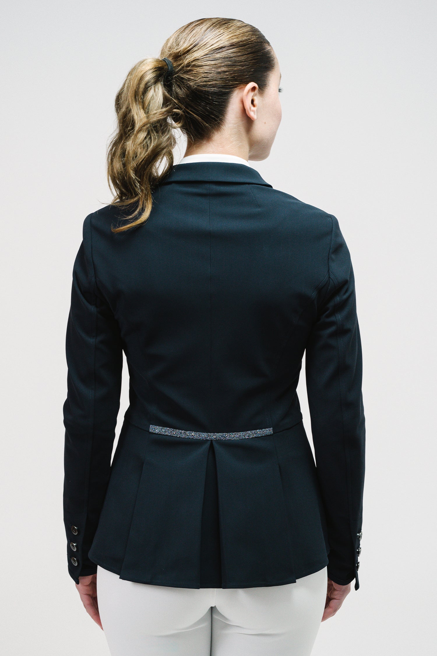 Kavajen är designad för ryttarens komfort och rörelsefrihet. Den figursydda modellen är sydd något kortare fram, längre bak och ger ett nätt intryck.