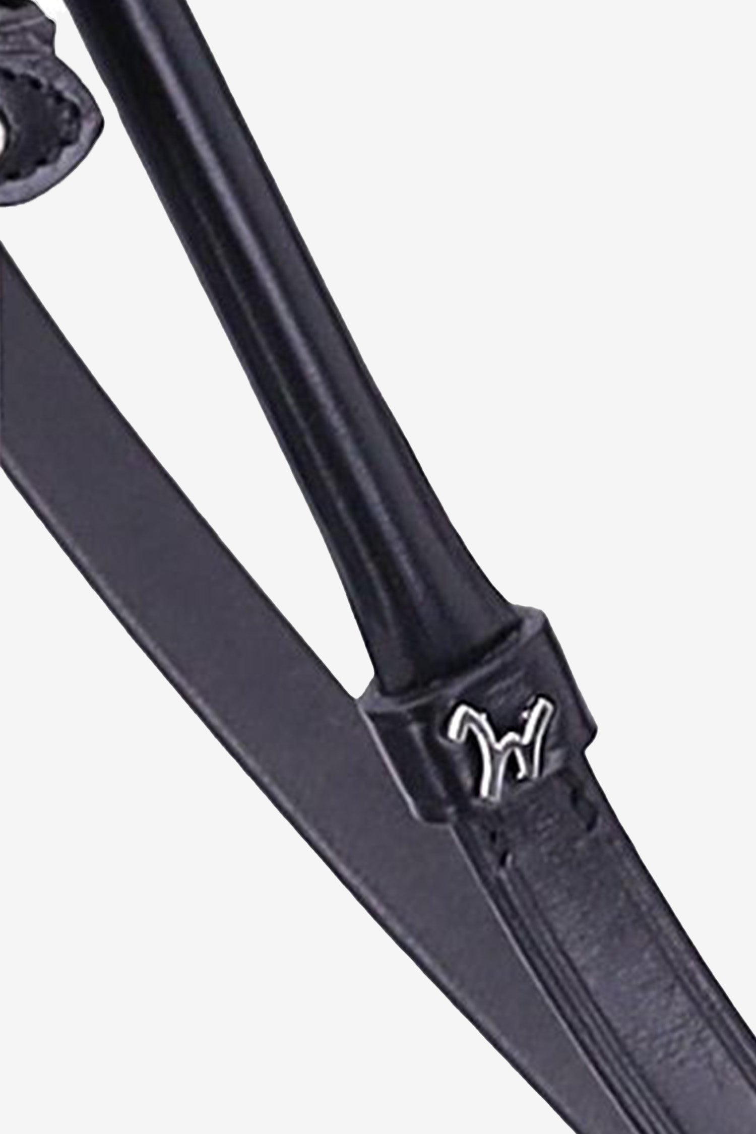 Den anatomiskt utformade nosgrimman är förböjd och följer hästens naturliga huvudform för en stabil och stilla position. Den särskilda anatomiska vadderingen gör att nosgrimman ligger jämnt mot huvudet och stödjer en mjuk, förtroendefull kontakt mellan häst och ryttare. De infällda och mjukt vadderade D-ringarna på de löpande sidostyckena ger ytterligare stabilitet och en lugn inverkan.