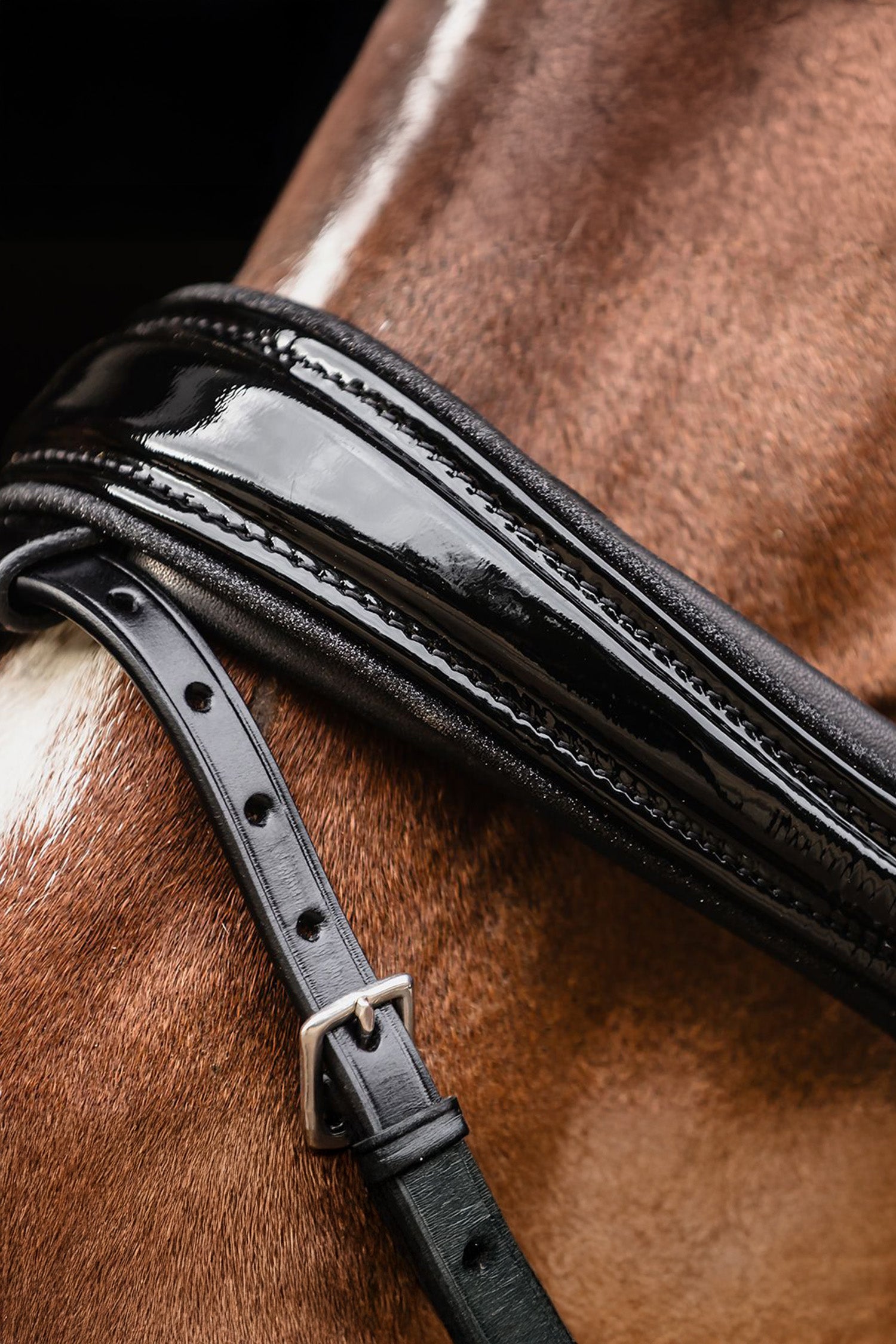 Det innovativa nackstycket är extremt mjukt vadderat och utformat för att effektivt minska trycket bakom öronen. Knäppningen i nacken, som många dressyrryttare föredrar, är integrerad på ett sätt som ger optimal avlastning och följsamhet. Resultatet är en mer avslappnad och tillfreds häst med bättre förutsättningar att arbeta korrekt.