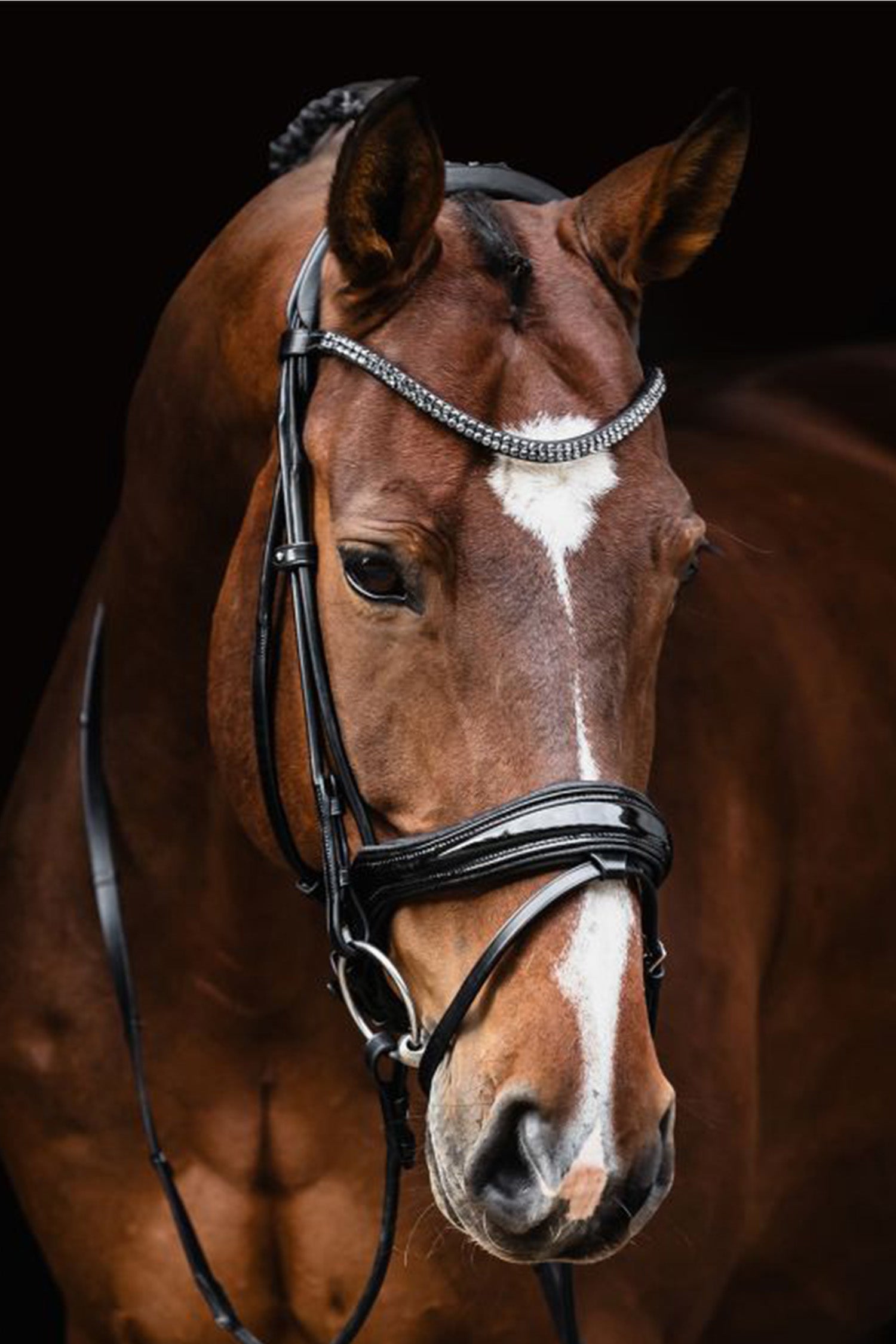 Satchmo är ett exklusivt rundsytt träns ur Isabell Werth-kollektionen från Schockemöhle Sports, utvecklat med fullt fokus på hästens komfort och anatomi. Varje detalj är noggrant genomtänkt för att ge en stabil, mjuk och harmonisk passform – särskilt i det känsliga nackområdet där tryck ofta uppstår.