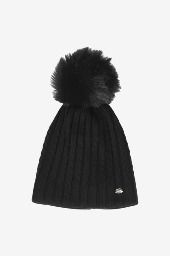 Mysig mössa från Pikeur med tofs i fuskpäls och mysig stickning. Fodrad med varm fleece.
