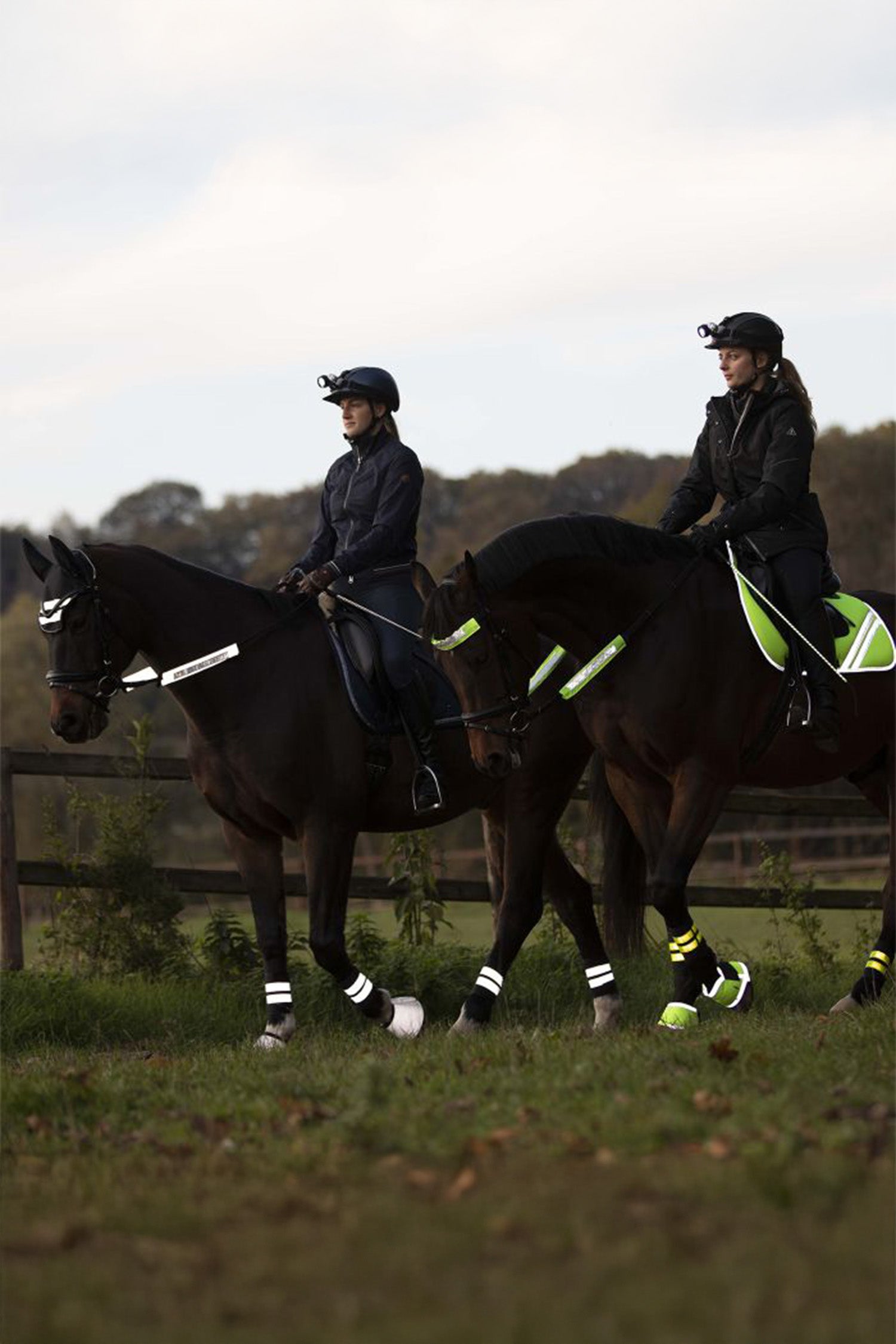 Reflexöverdragen fästs enkelt på träns, tyglar eller grimma med kardborre och sitter stadigt på plats utan att störa hästen. De är tillverkade i slitstarkt material och tål både väta och kyla – perfekta för uteritter under höst och vinter.